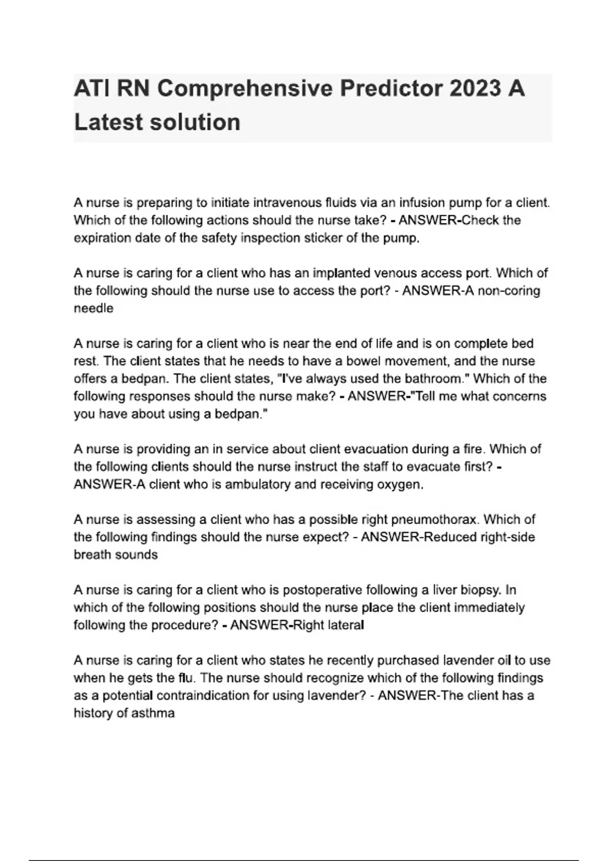 ATI RN Comprehensive Predictor 2023 A | Questions with 100% Correct Answers | Verified | Latest Update 2025 Graded A+.