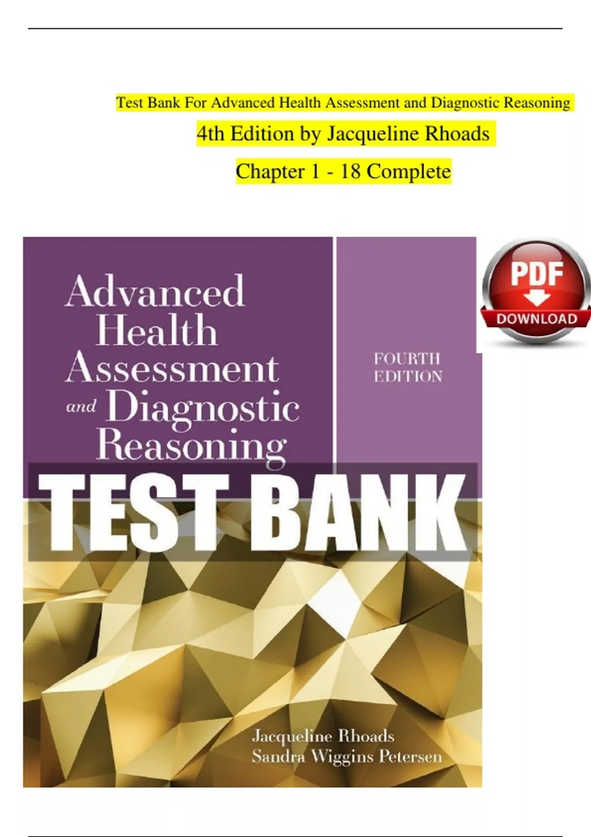 Test Banks For Advanced Health Assessment and Diagnostic Reasoning 4th Edition by Jacqueline Rhoads; Sandra Wiggins Petersen, 9781284170313, Chapter 1-18 Complete Guide Test Banks For Advanced Health Assessment and Diagnostic Reasoning 4th Edition by Jacqueline Rhoads; Sandra Wiggins Petersen, 9781284170313, Chapter 1-18 Complete Guide