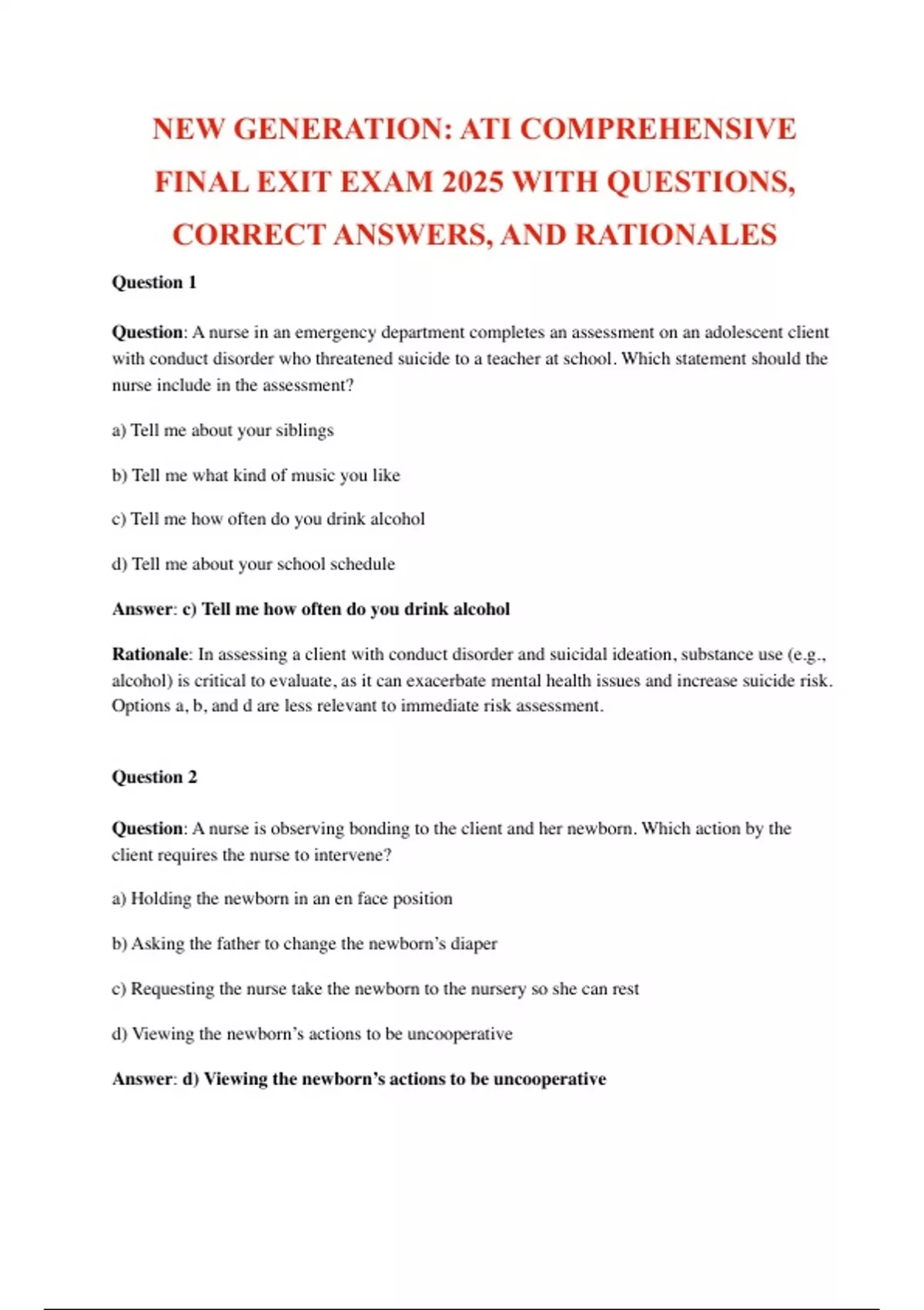 FINAL EXIT EXAM 2025 WITH QUESTIONS,