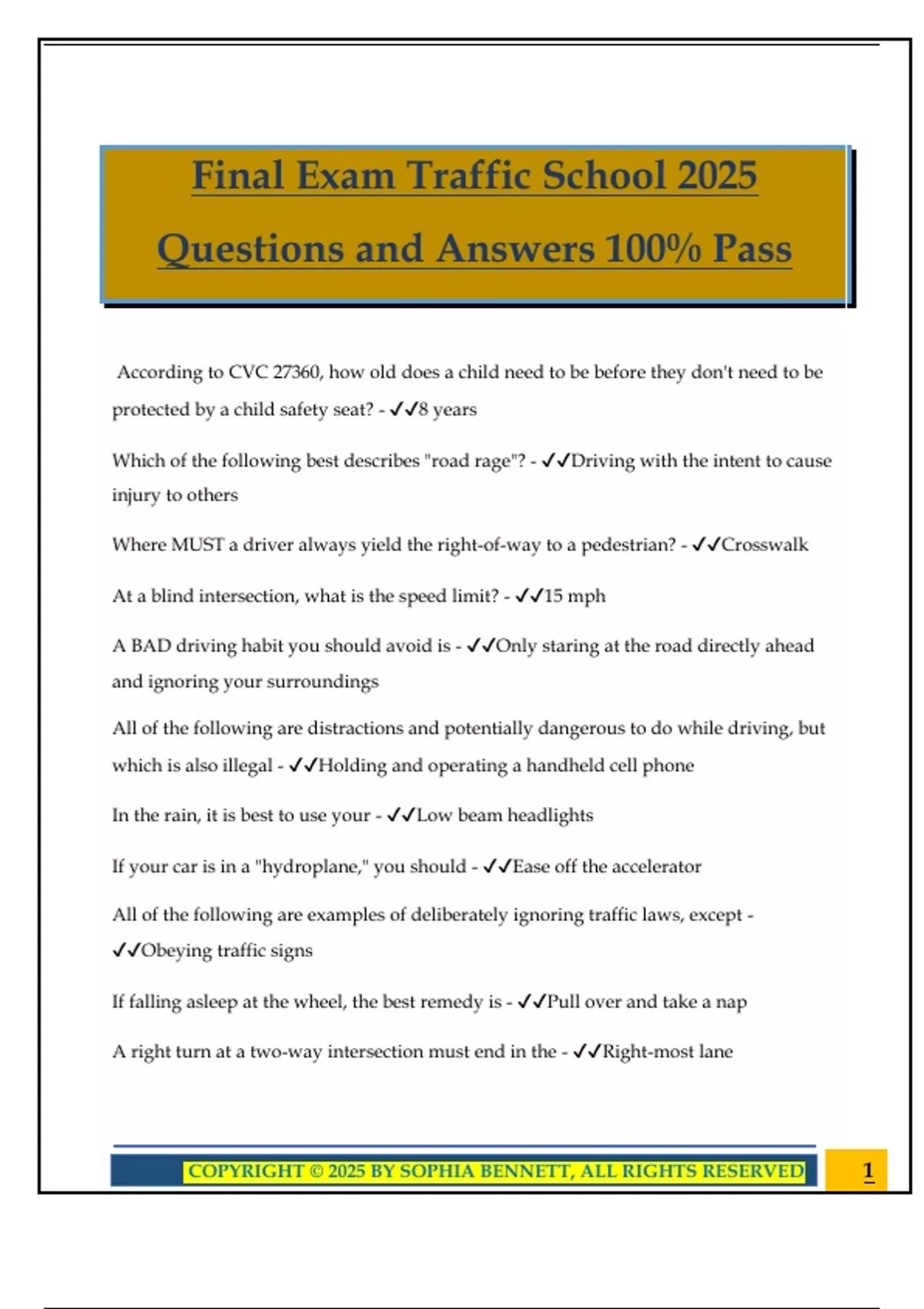 COPYRIGHT © 2025 BY SOPHIA BENNETT, ALL RIGHTS RESERVED 1