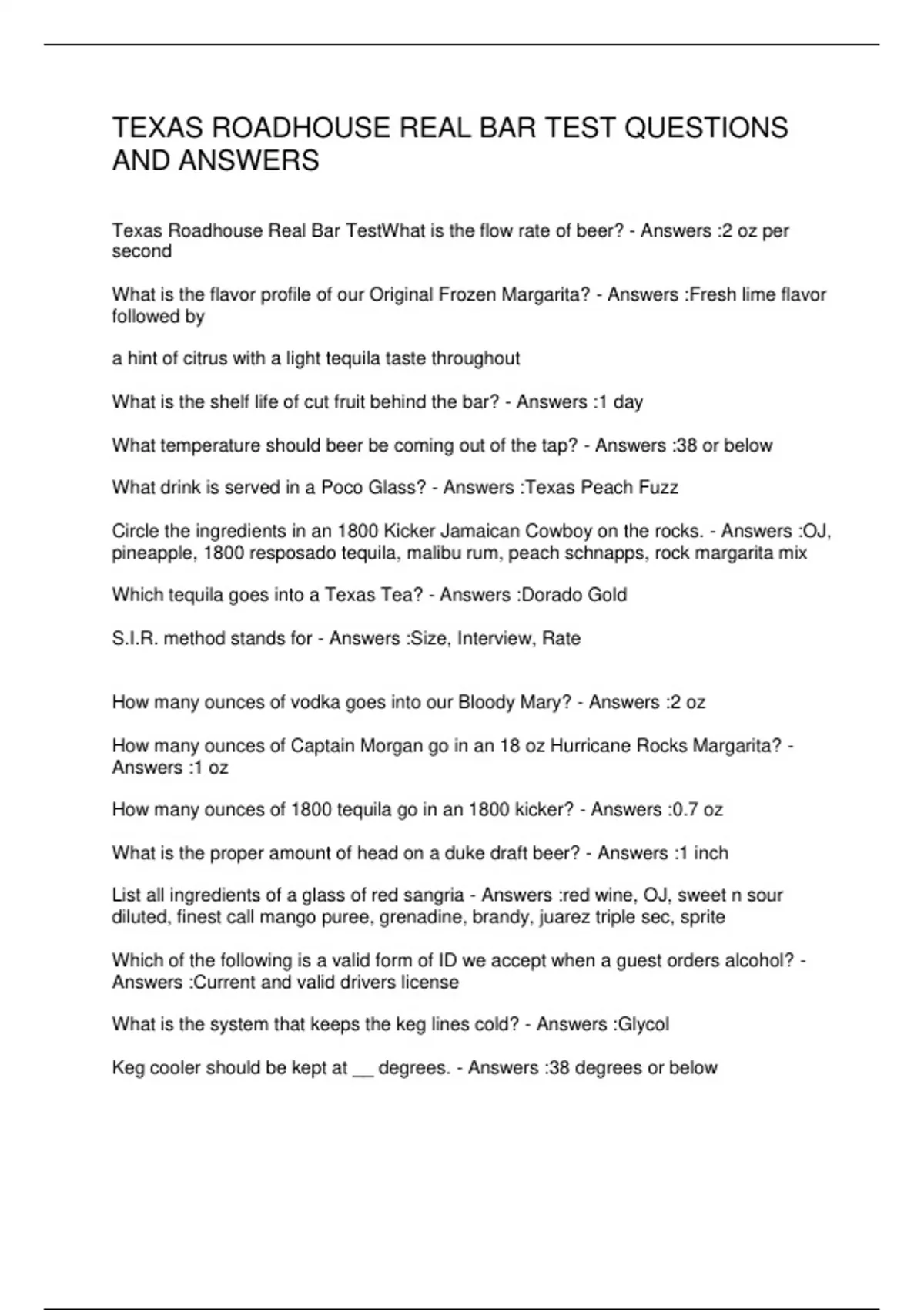 TEXAS ROADHOUSE REAL BAR TEST QUESTIONS