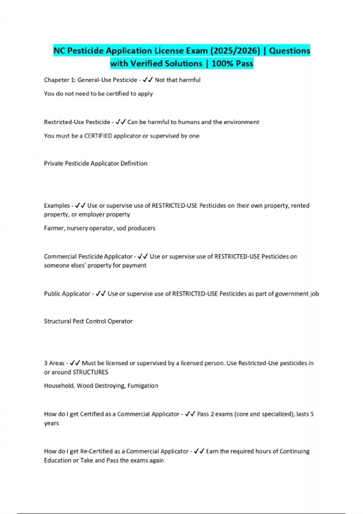NC Pesticide Application License Exam (2025/2026) | Questions with Verified Solutions | 100% Pass