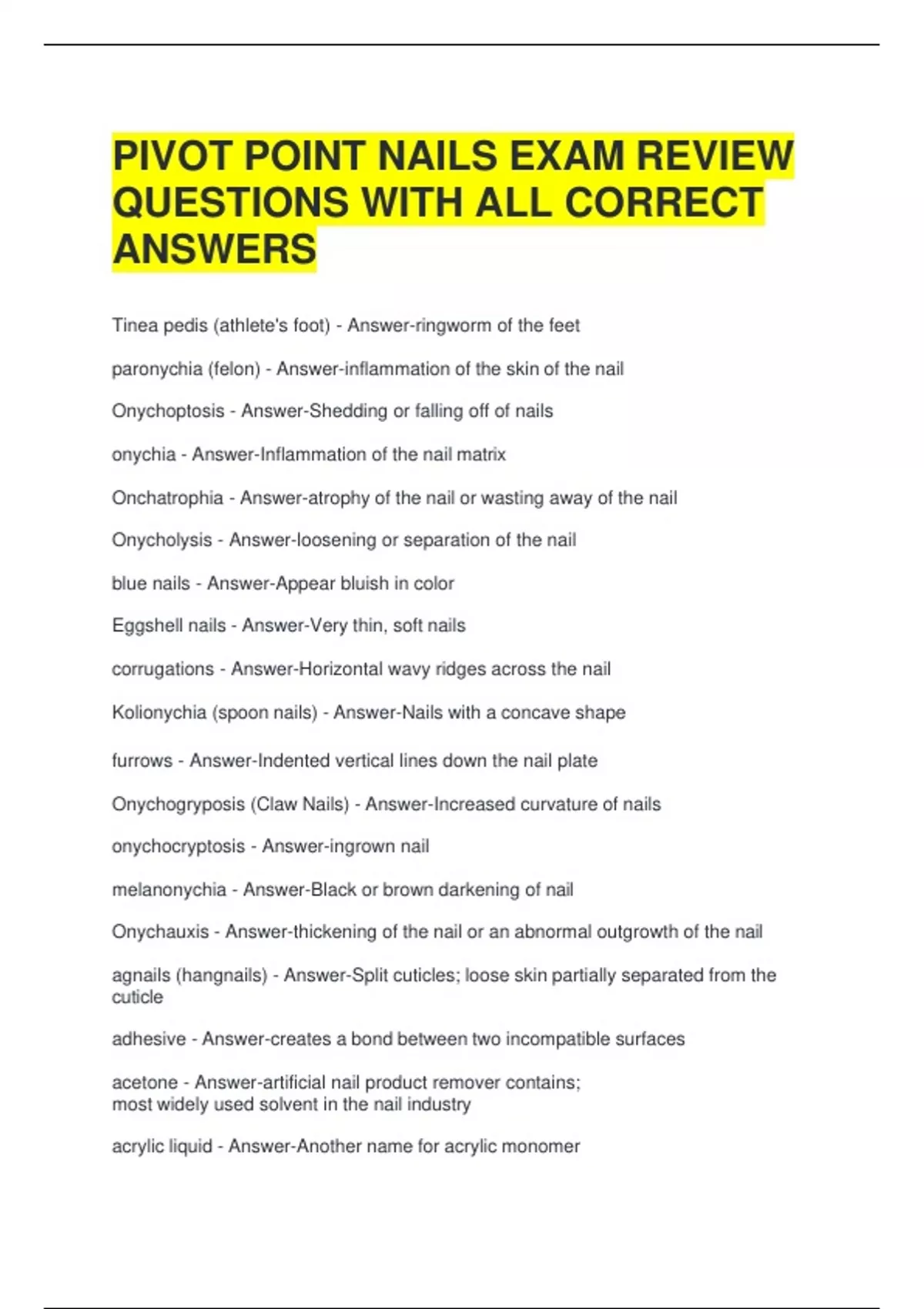 PIVOT POINT NAILS EXAM REVIEW