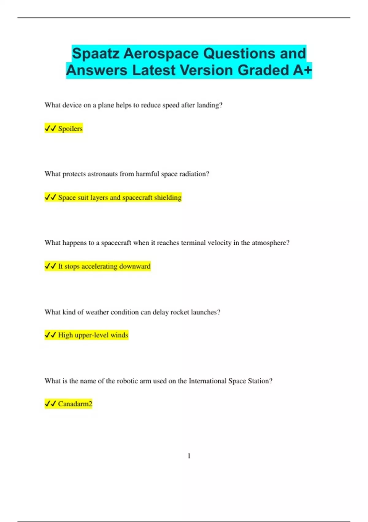 Spaatz Aerospace Questions and Answers Latest Version Graded A+