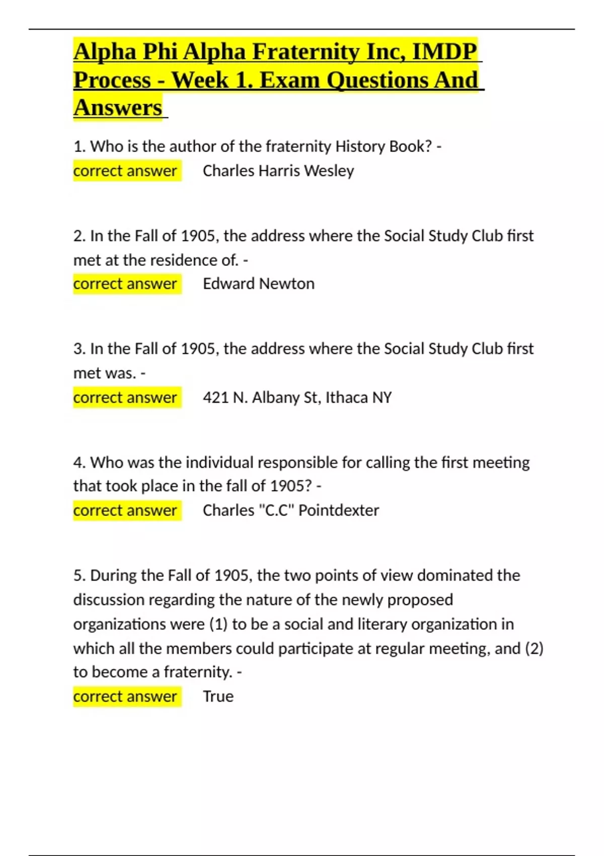 Alpha Phi Alpha Fraternity Inc, IMDP Process - Week 1. Exam Questions And A