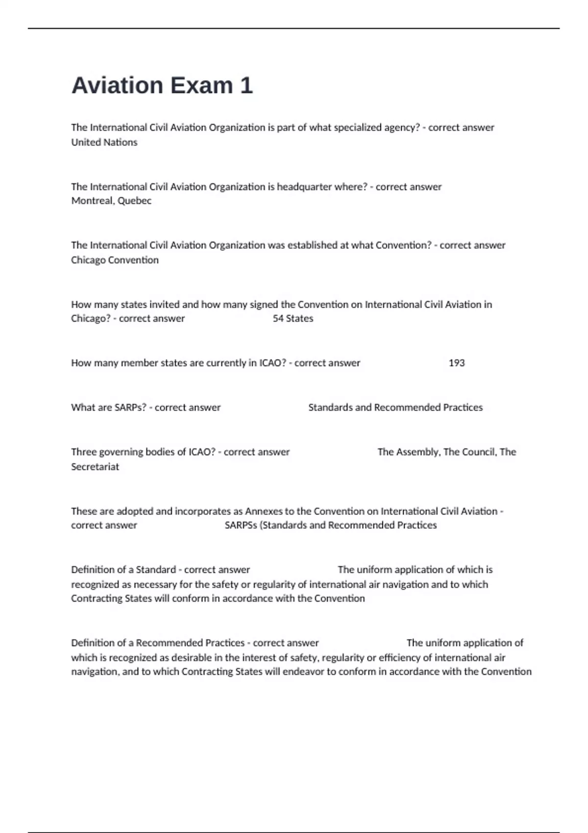 Aviation Exam 1 Complete Solution 100% Verified Answers Graded A+.