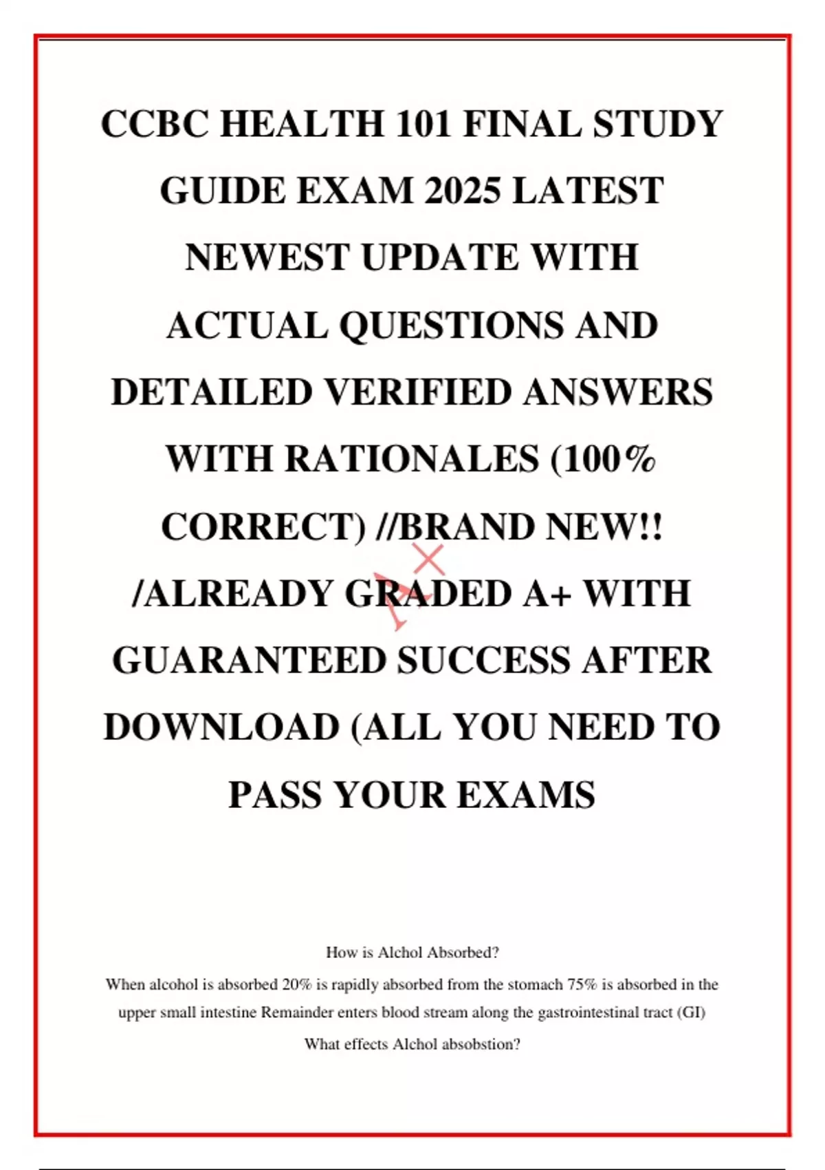 CCBC HEALTH 101 FINAL STUDY GUIDE EXAM 2025 LATEST NEWEST UPDATE WITH ACTUAL QUESTIONS AND DETAILED VERIFIED ANSWERS WITH RATIONALES (100% CORRECT) //BRAND NEW!! /ALREADY GRADED A+ WITH GUARANTEED SUCCESS AFTER DOWNLOAD (ALL YOU NEED TO PASS YOUR EXAMS