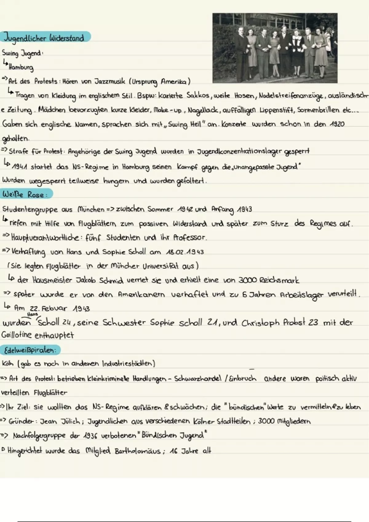 Zusammenfassung der :Swing Jugend,Weiße Rose und Edelweißpiraten