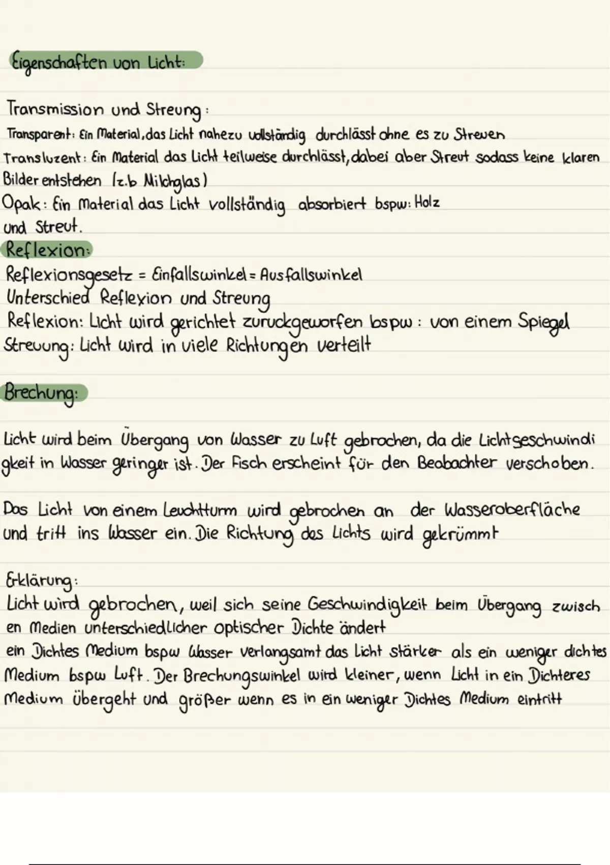 Zusammenfassung Eigenschaften von Licht