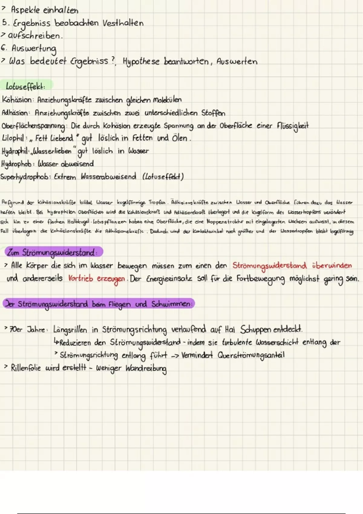 Zusammenfassung Part 2 Lotuseffekt Strömungswiederstabd
