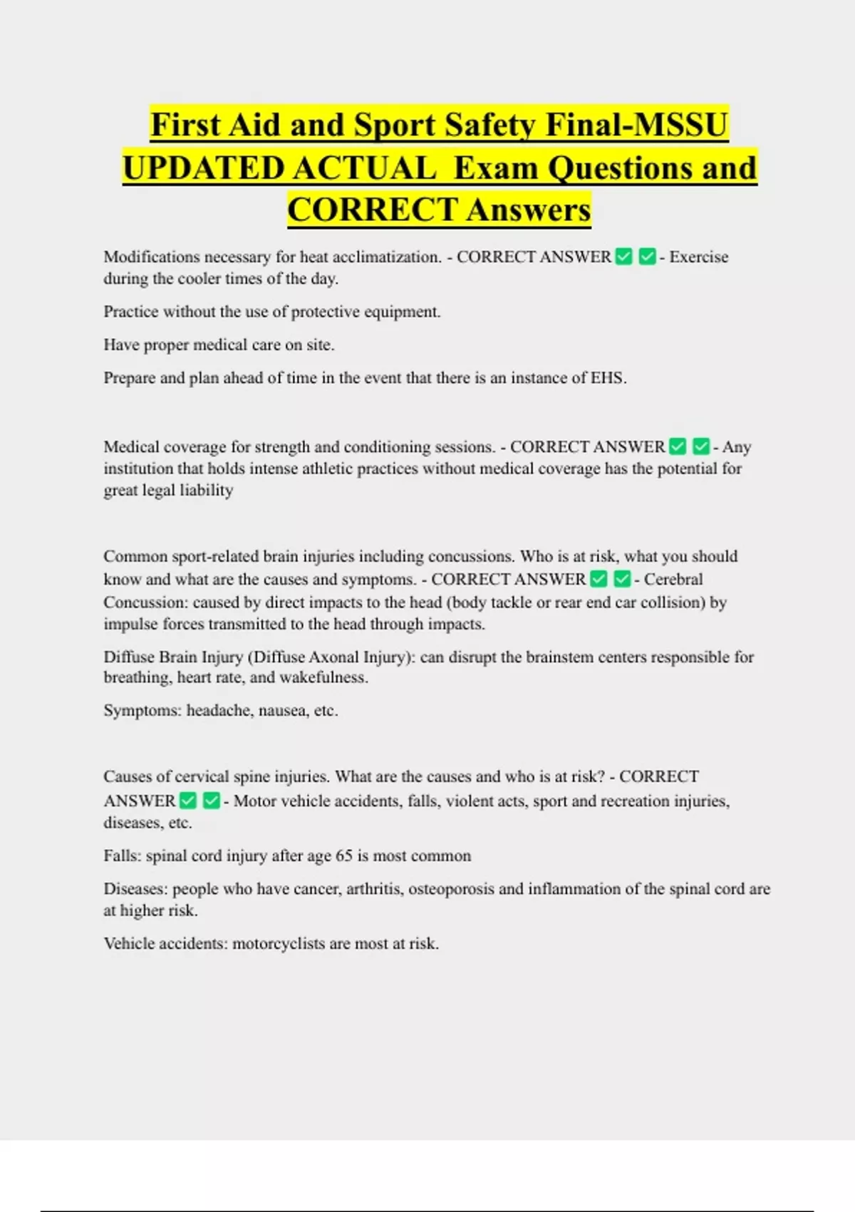 Medical coverage for strength and conditioning sessions. - CORRECT ANSWER - Any