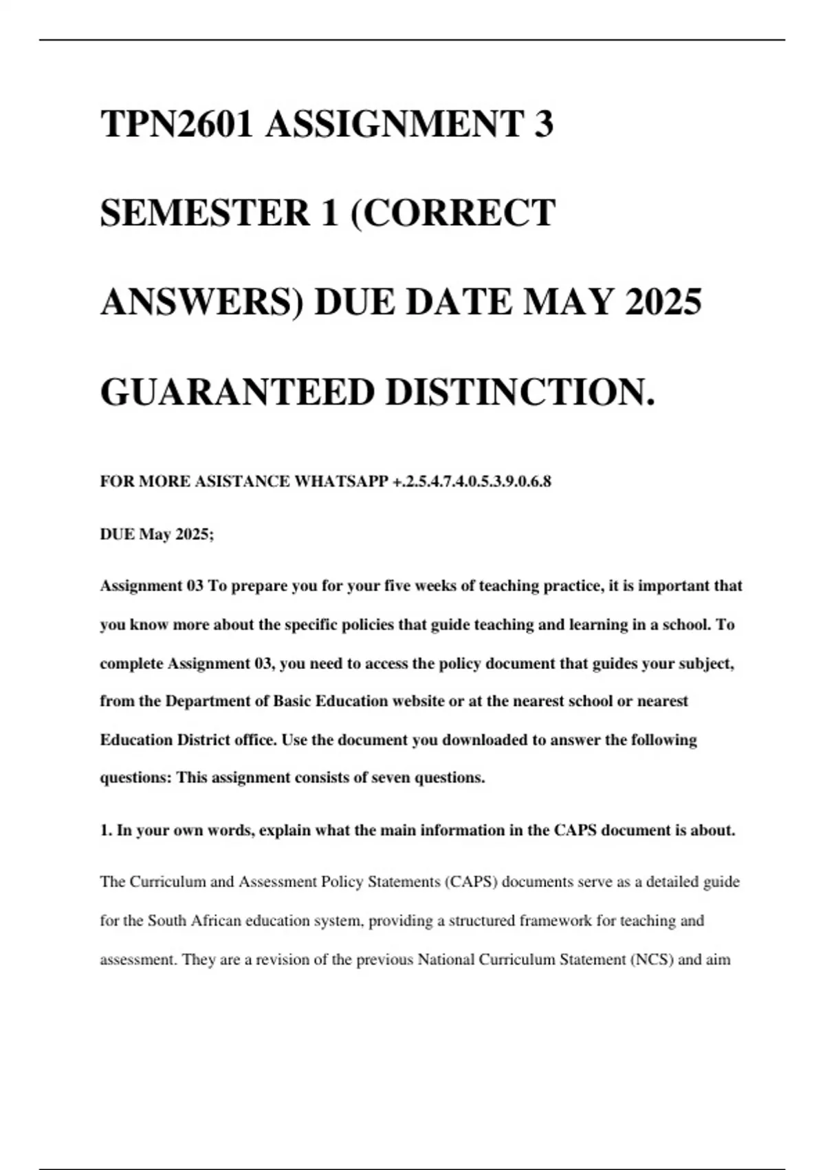 1. In your own words, explain what the main information in the CAPS document is about.