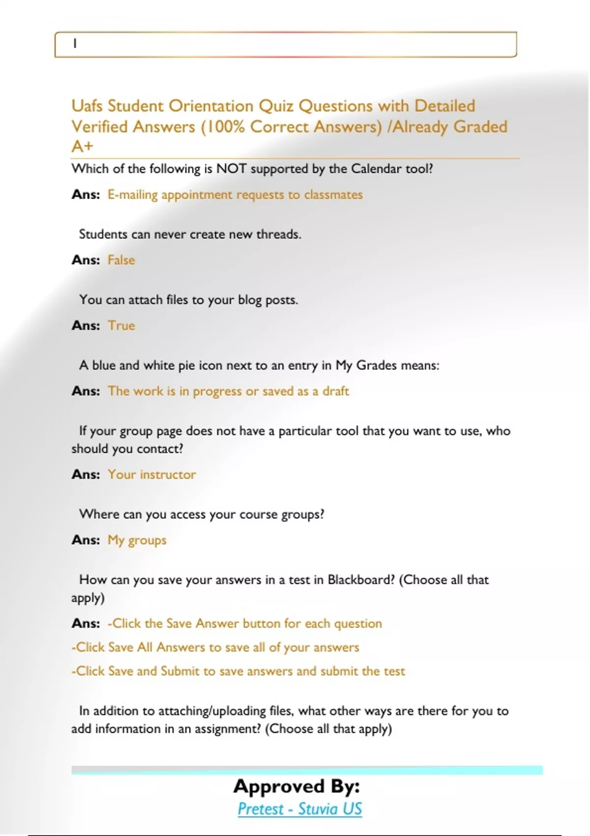 Uafs Student Orientation Quiz Questions with Detailed