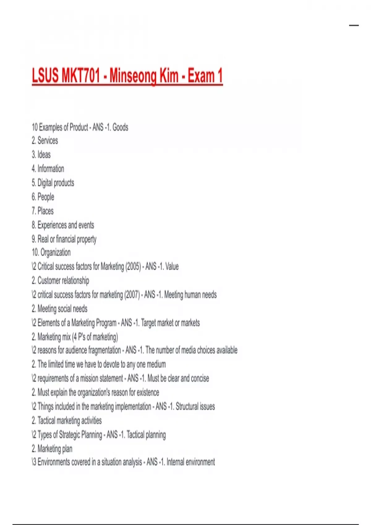 LSUS MKT701 - Minseong Kim - Exam 1
