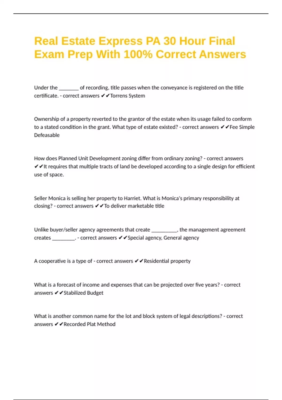 answers ✔✔Recorded Plat Method