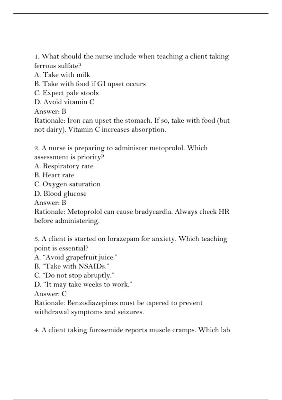 3. A client is started on lorazepam for anxiety. Which teaching