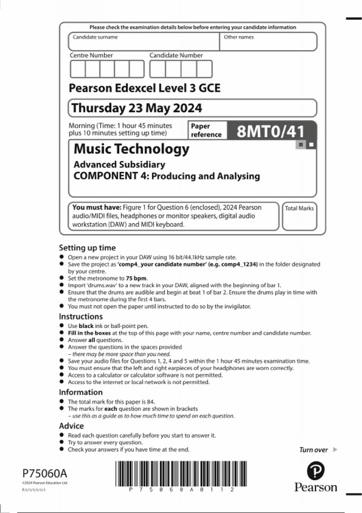 MUSIC TECHNOLOGY(Producing and analysing 8MT0/41)