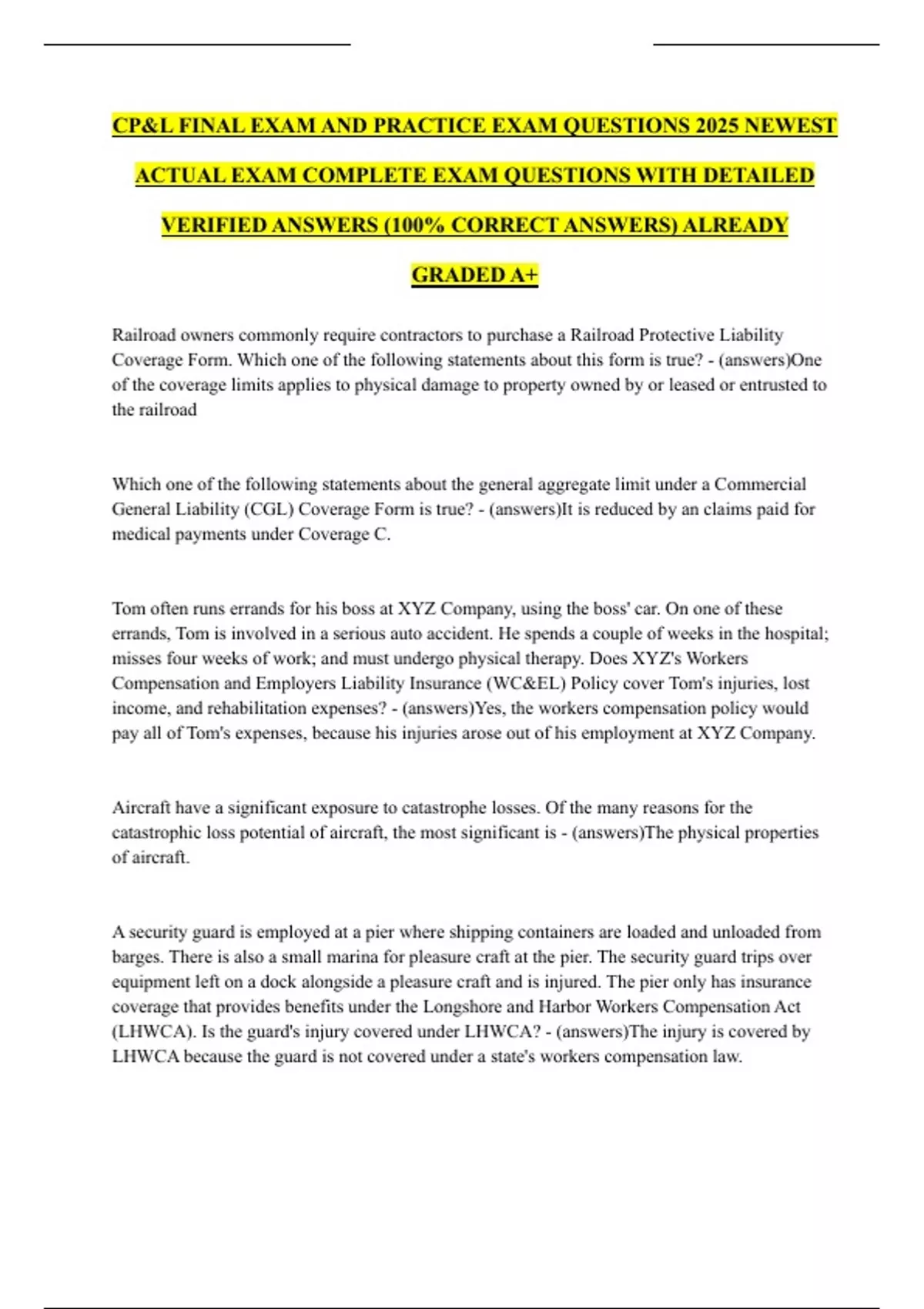 CP&L FINAL EXAM AND PRACTICE EXAM QUESTIONS 2025 NEWEST ACTUAL EXAM COMPLETE EXAM QUESTIONS WITH DETAILED VERIFIED ANSWERS (100% CORRECT ANSWERS) ALREADY GRADED A+