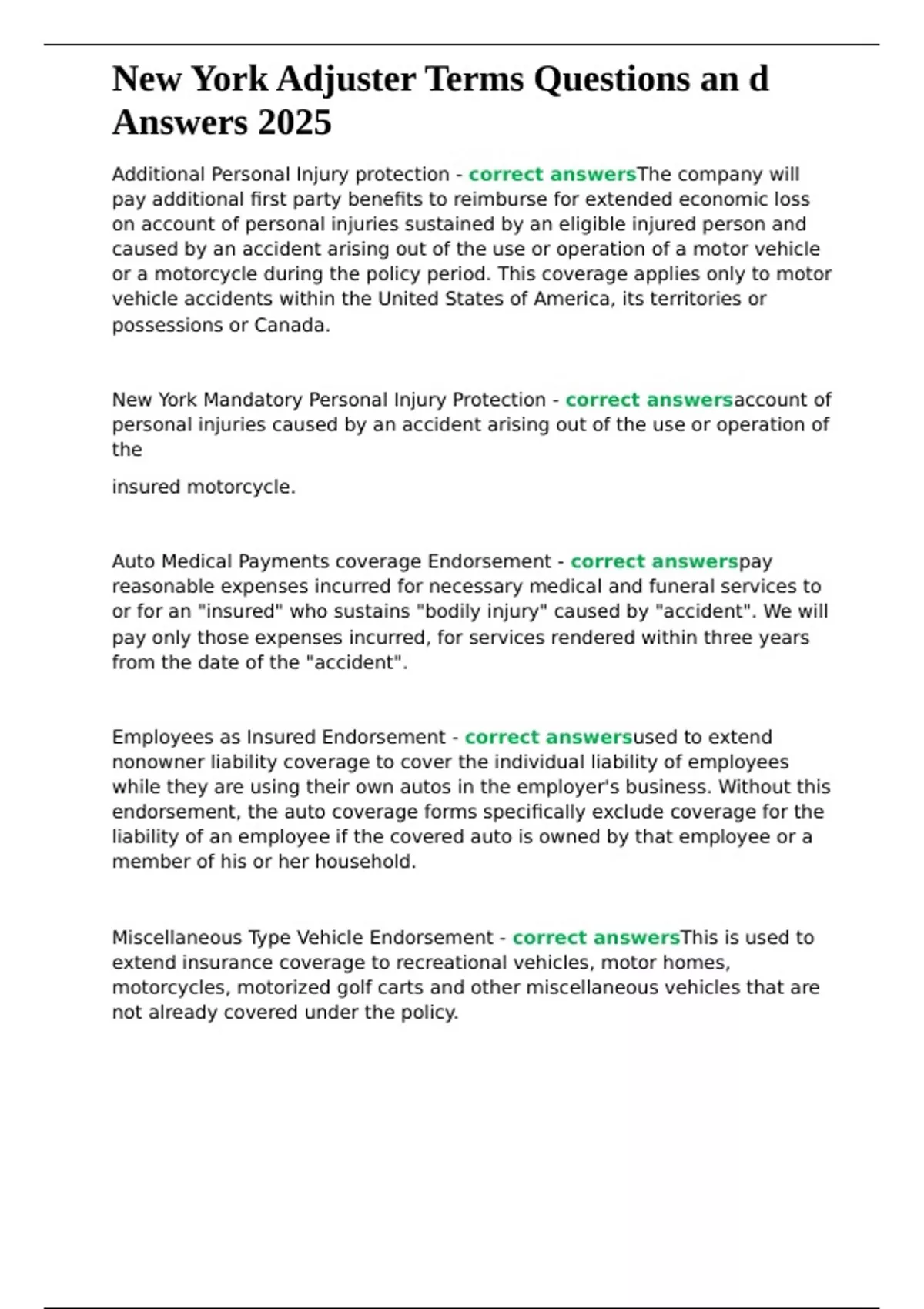 , New York Adjuster Terms Questions an d