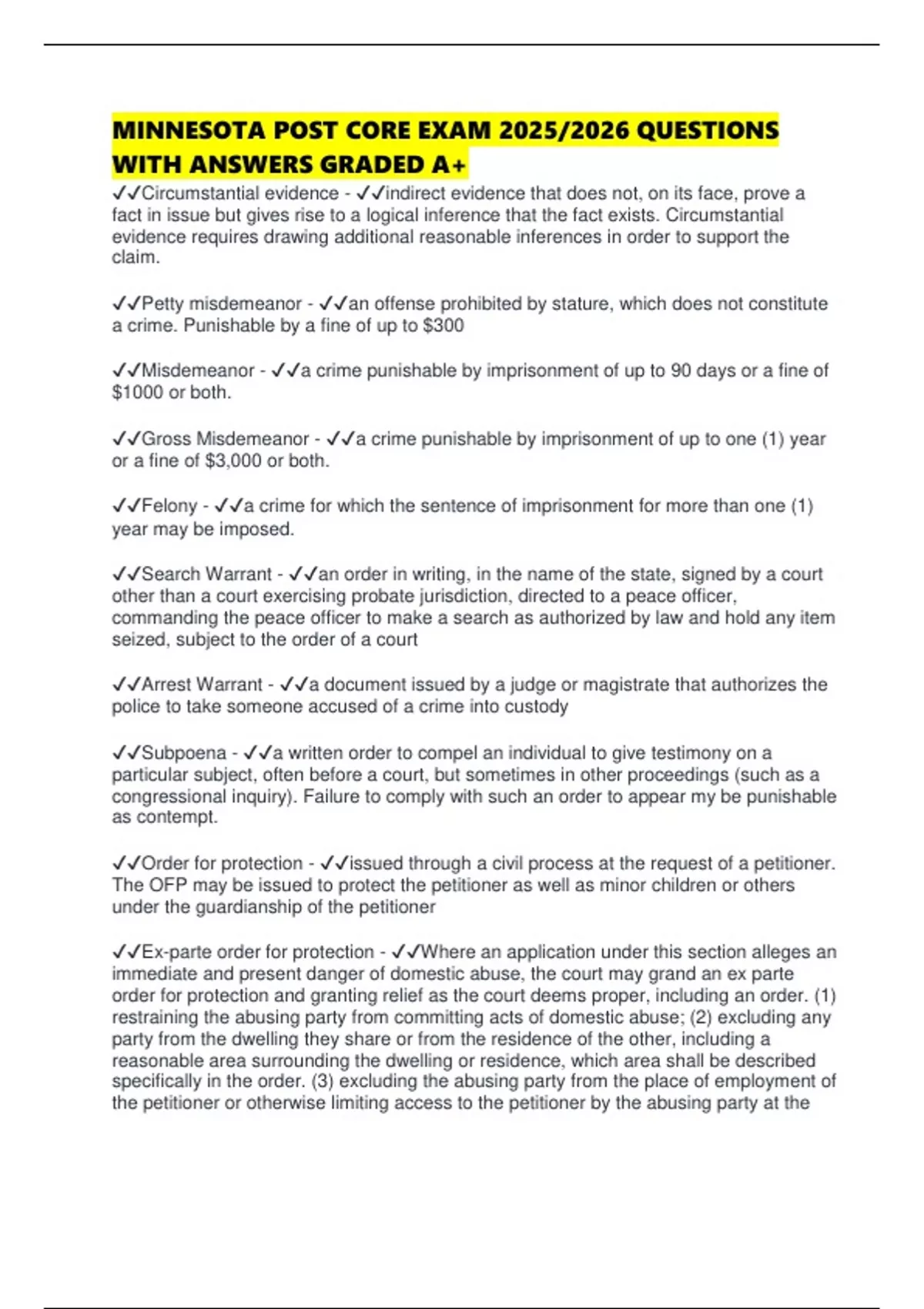 ✔✔Gross Misdemeanor - ✔✔a crime punishable by imprisonment of up to one (1) year