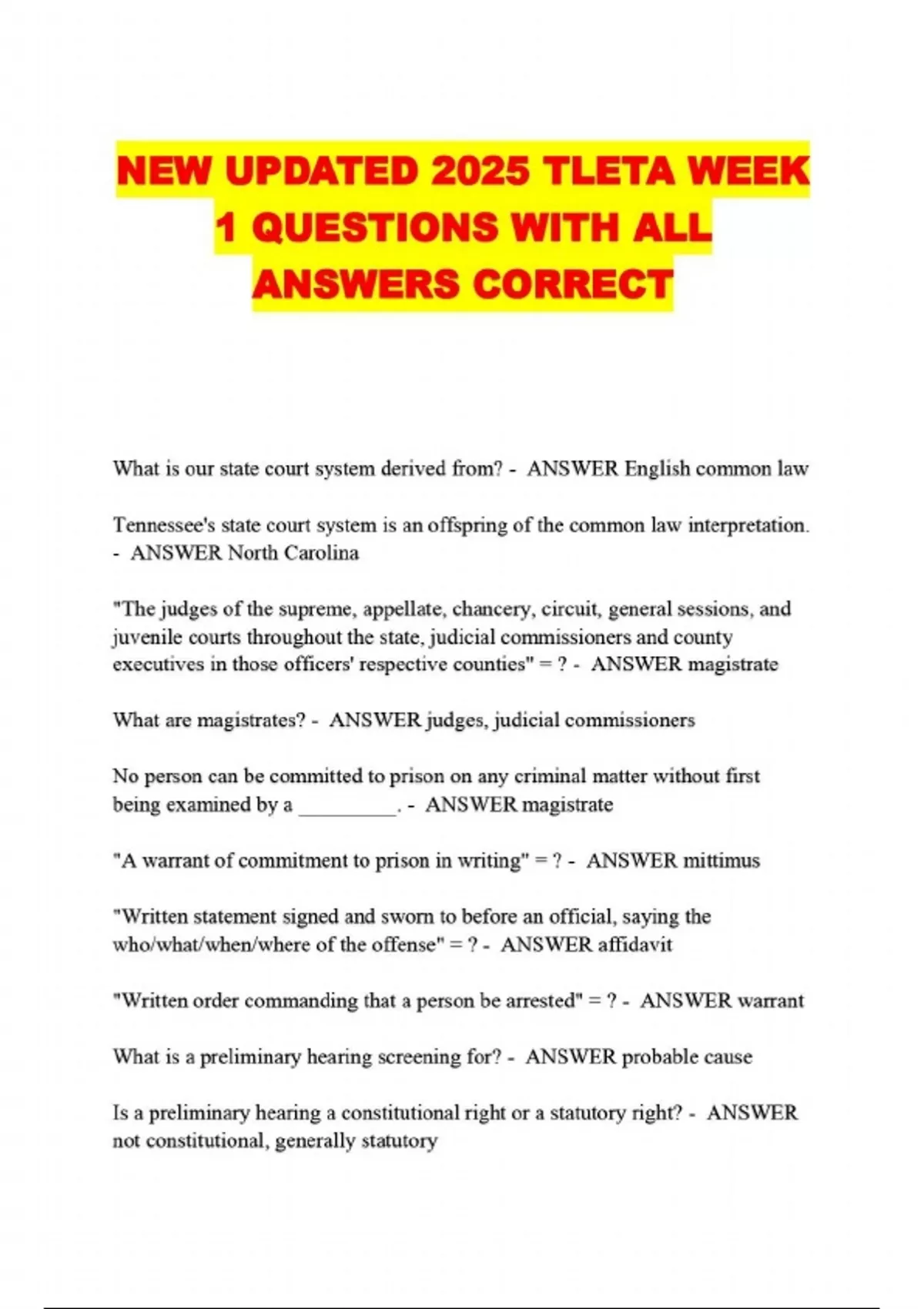 NEW UPDATED 2025 TLETA WEEK 1 QUESTIONS WITH ALL ANSWERS CORRECT....