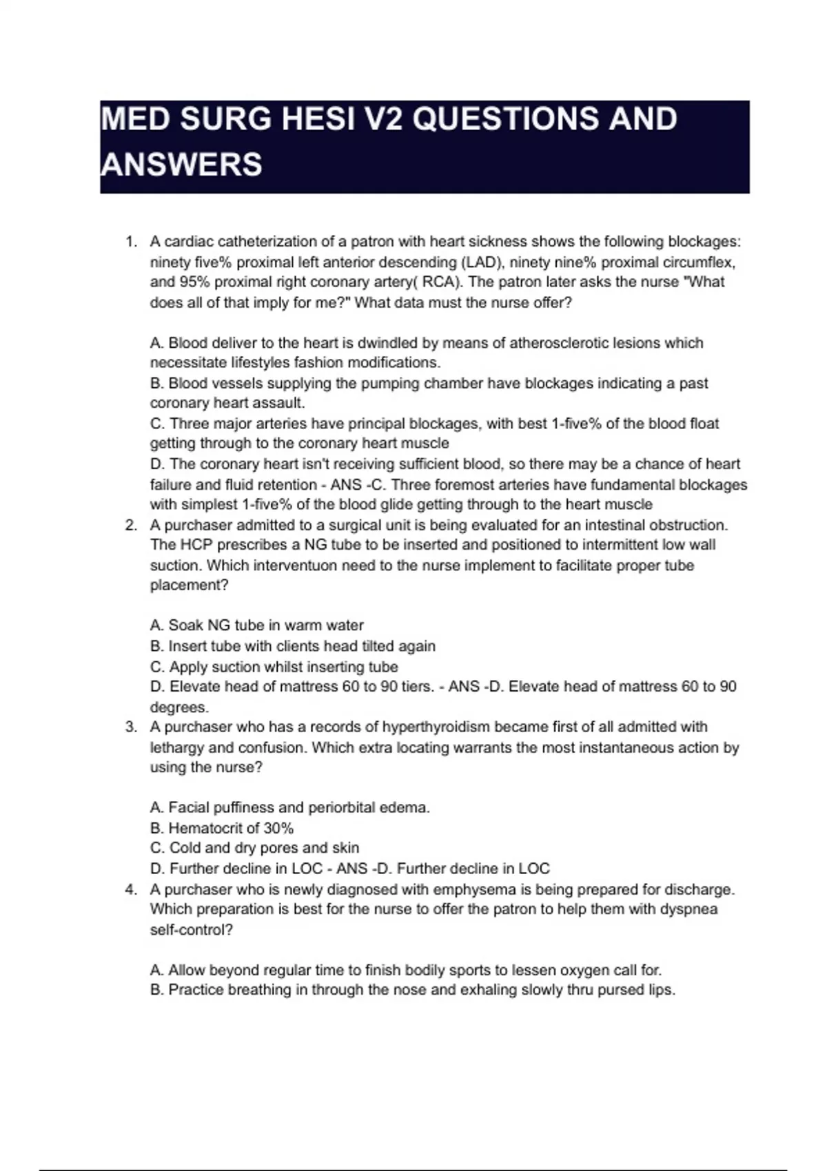 MED SURG HESI V2 QUESTIONS AND ANSWERS