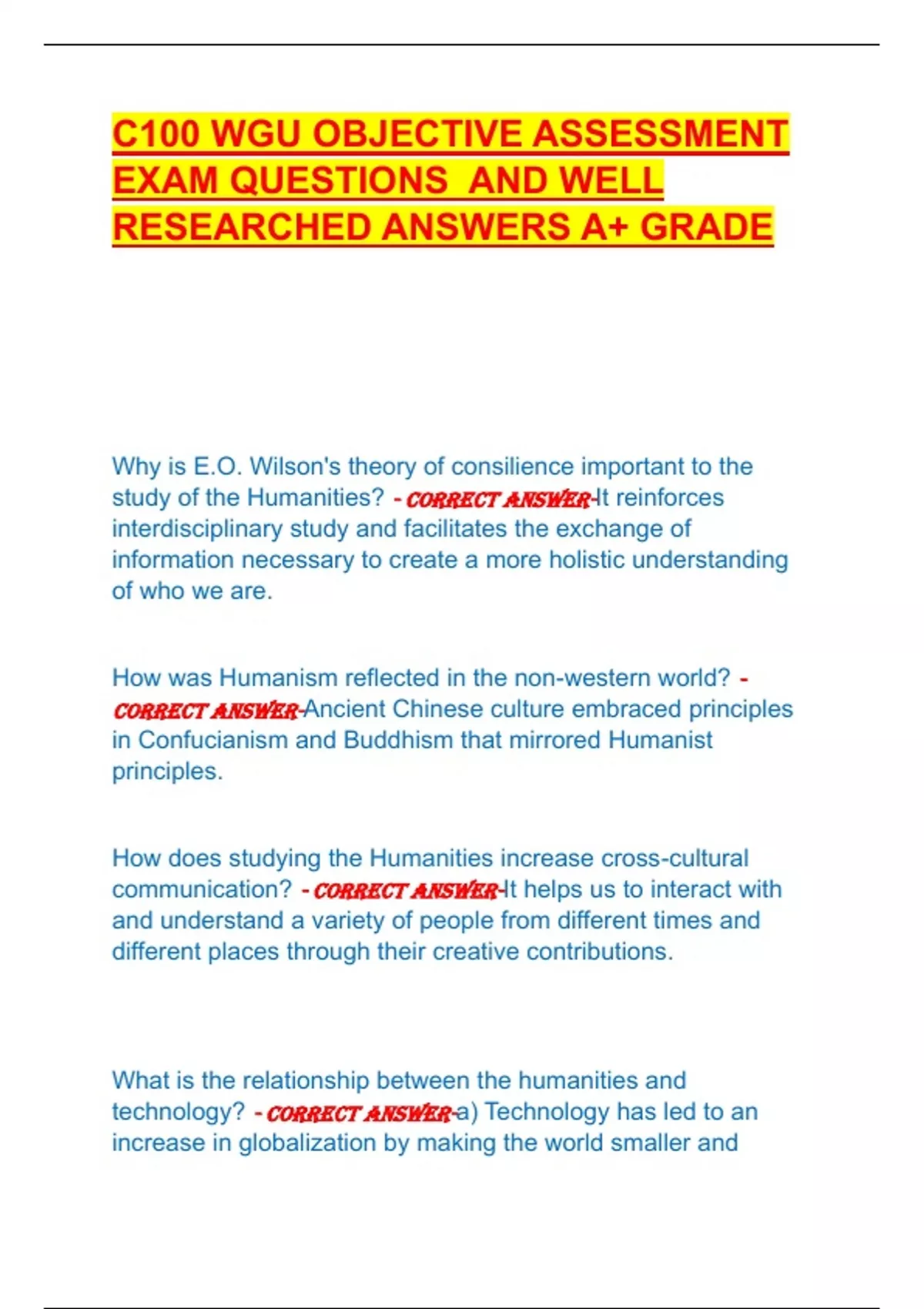 C100 WGU OBJECTIVE ASSESSMENT EXAM QUESTIONS AND WELL RESEARCHED ANSWERS A+ GRADE