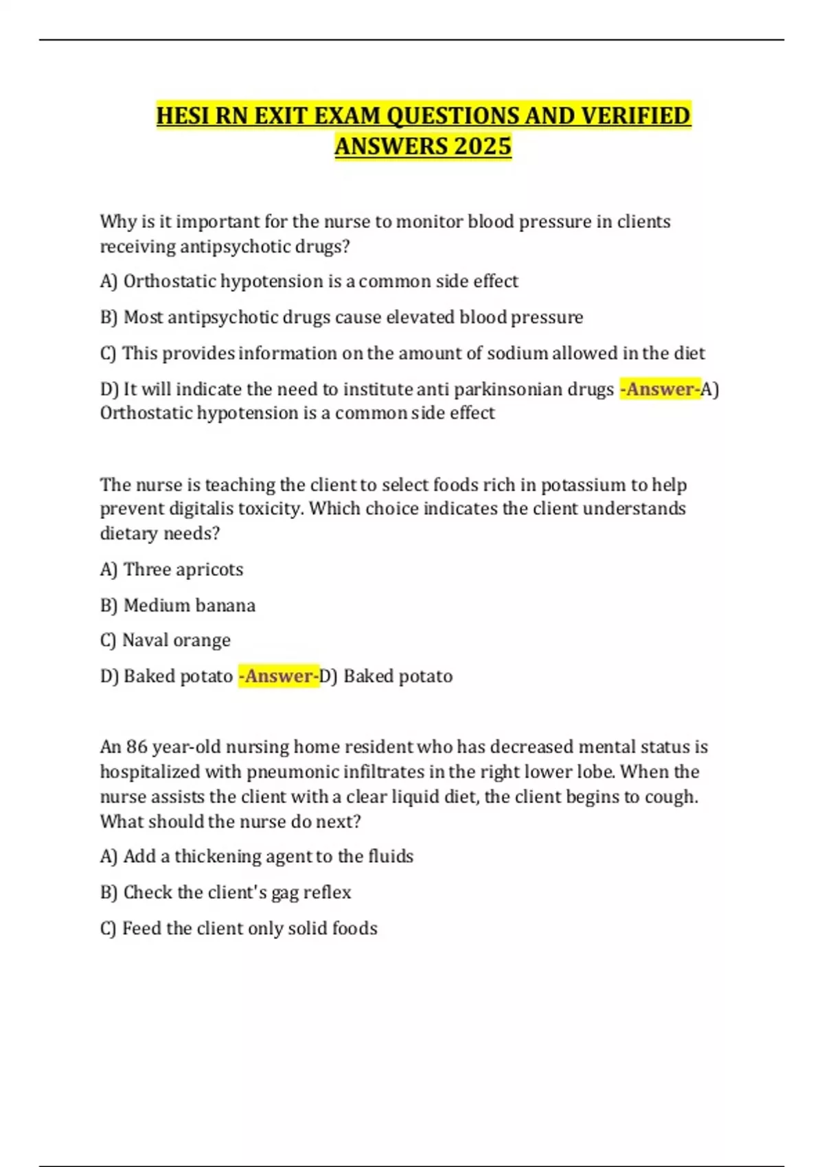 D) Baked potato -Answer-D) Baked potato