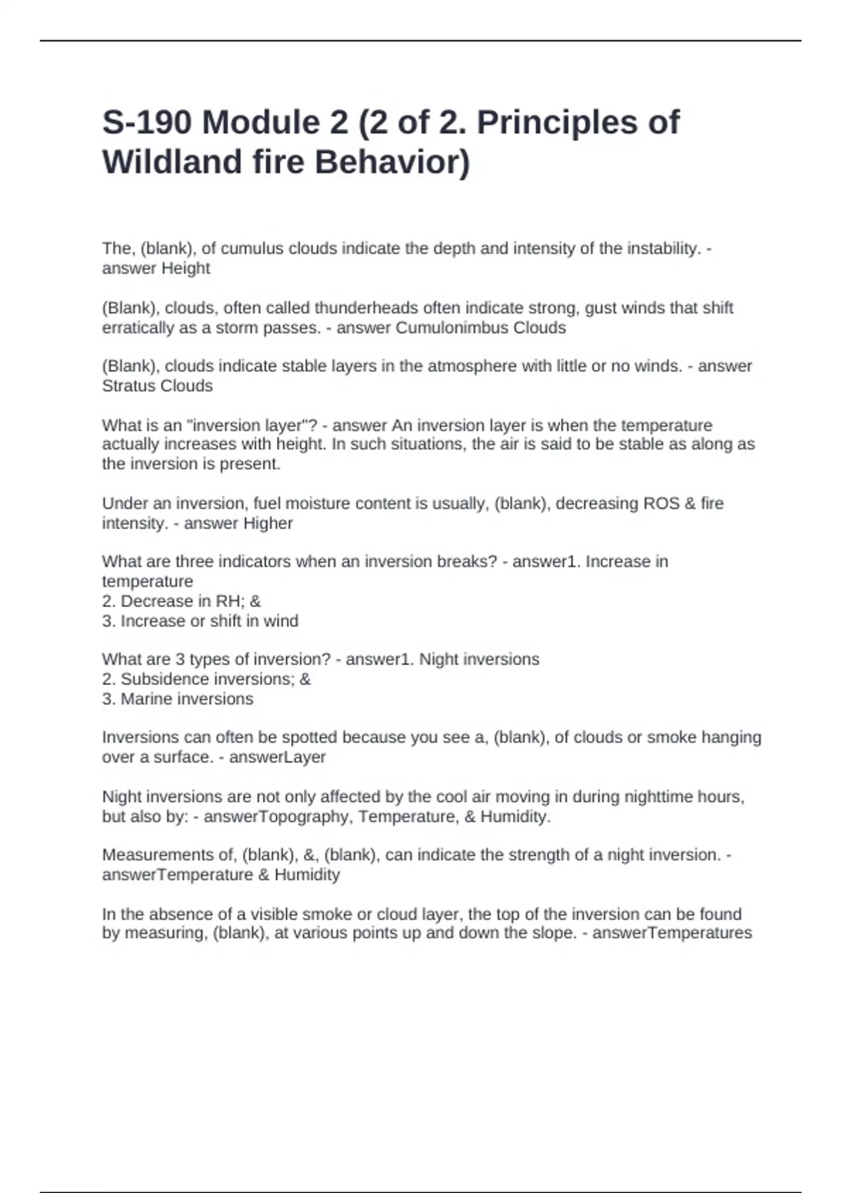 average RH can dry out fuels. - answerSubsidence Inversions