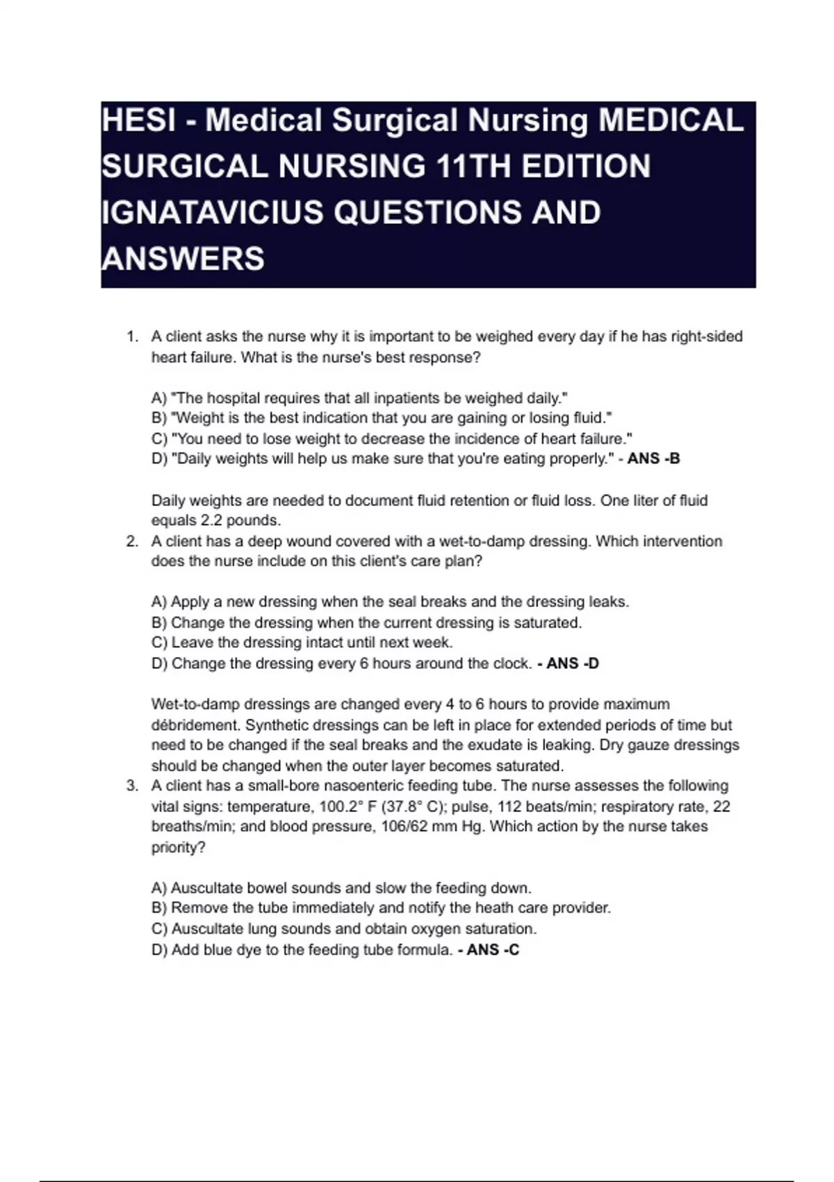1. A client asks the nurse why it is important to be weighed every day if he has right-sided