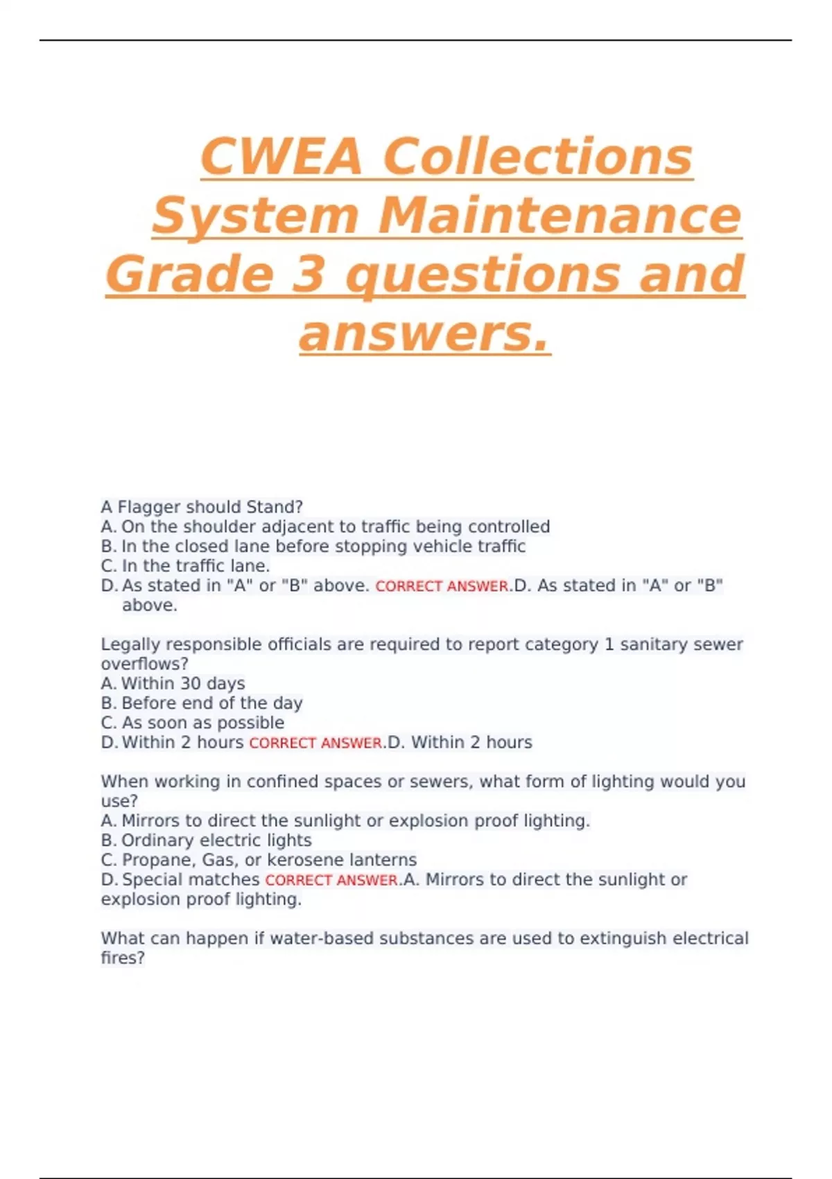 d. non-flammable atmospheres. CORRECT ANSWER.c. lack of oxygen.