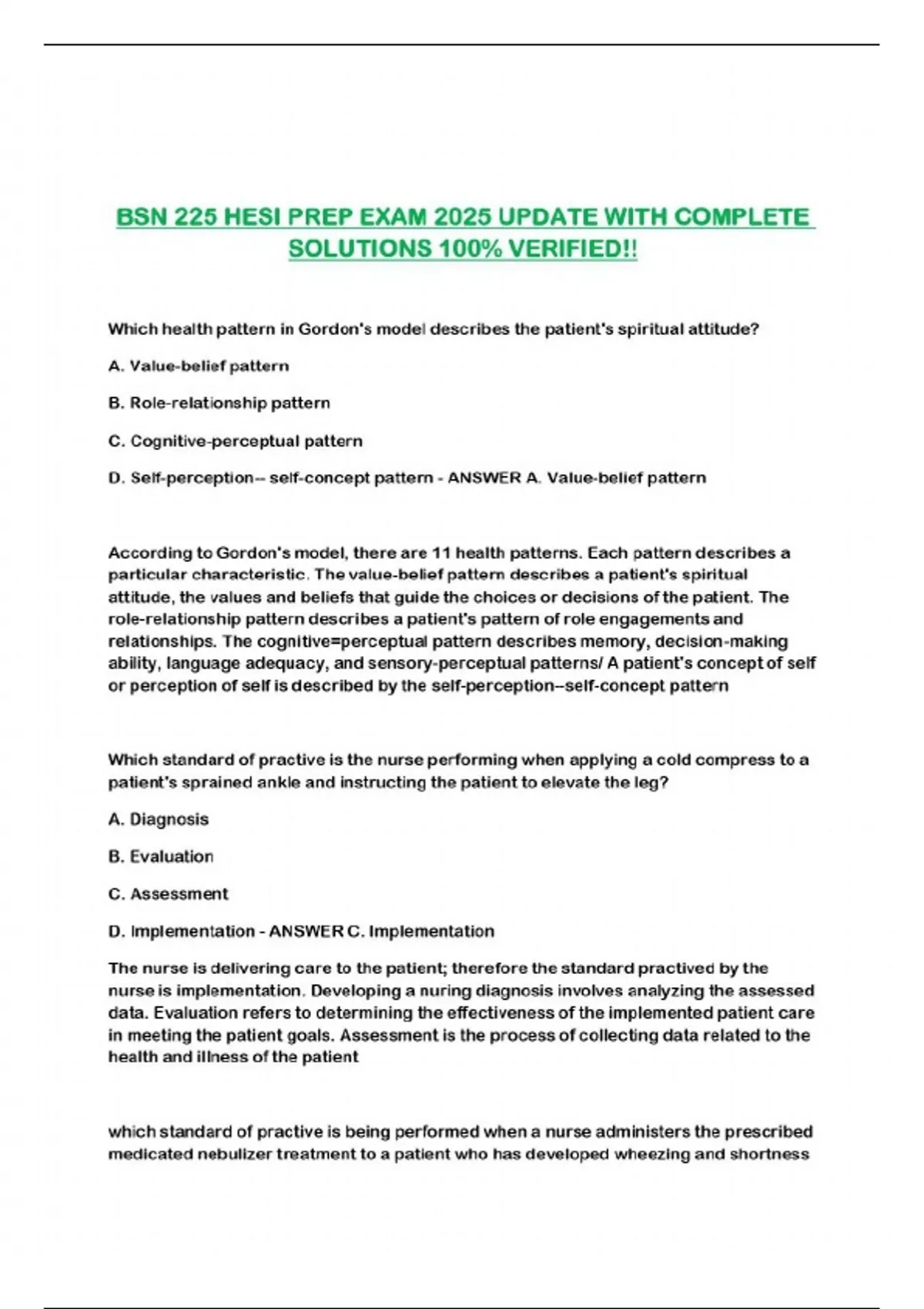 BSN 225 HESI PREP EXAM 2025 UPDATE WITH COMPLETE SOLUTIONS 100% VERIFIED!!