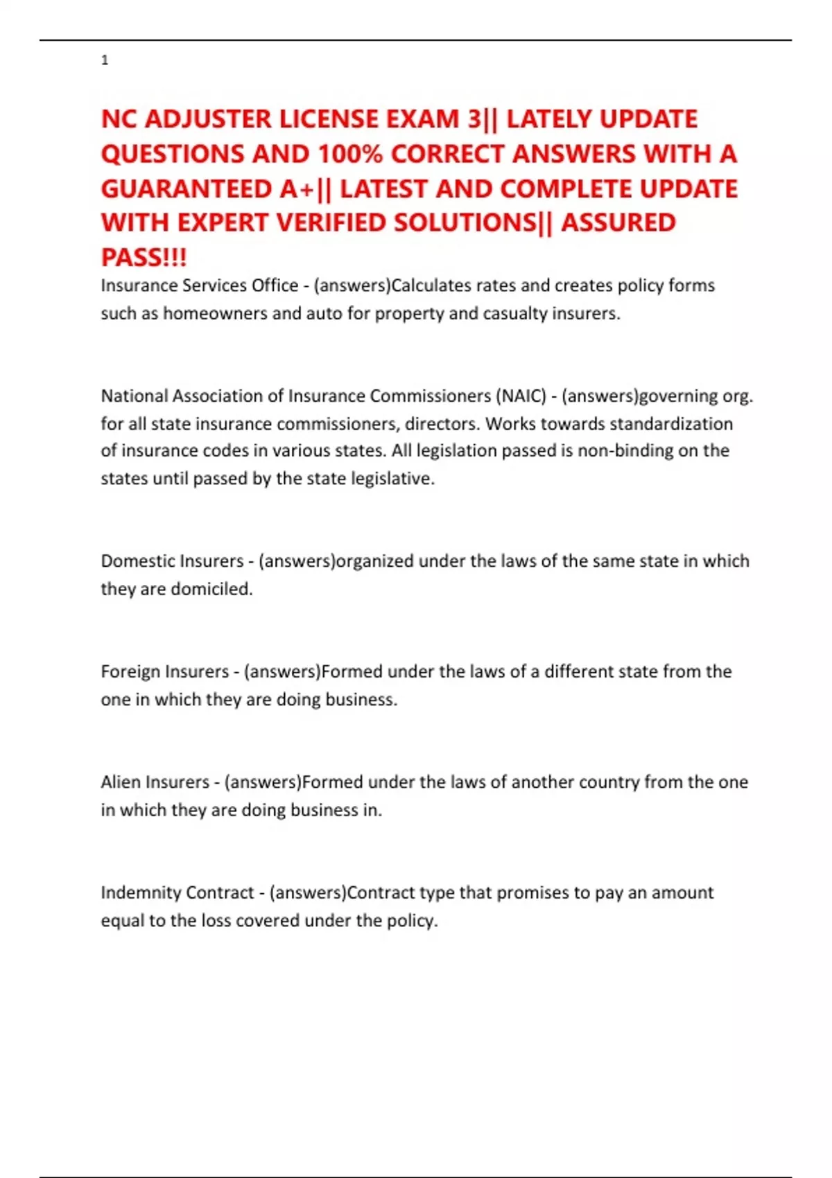 NC ADJUSTER LICENSE EXAM 3|| LATELY UPDATE