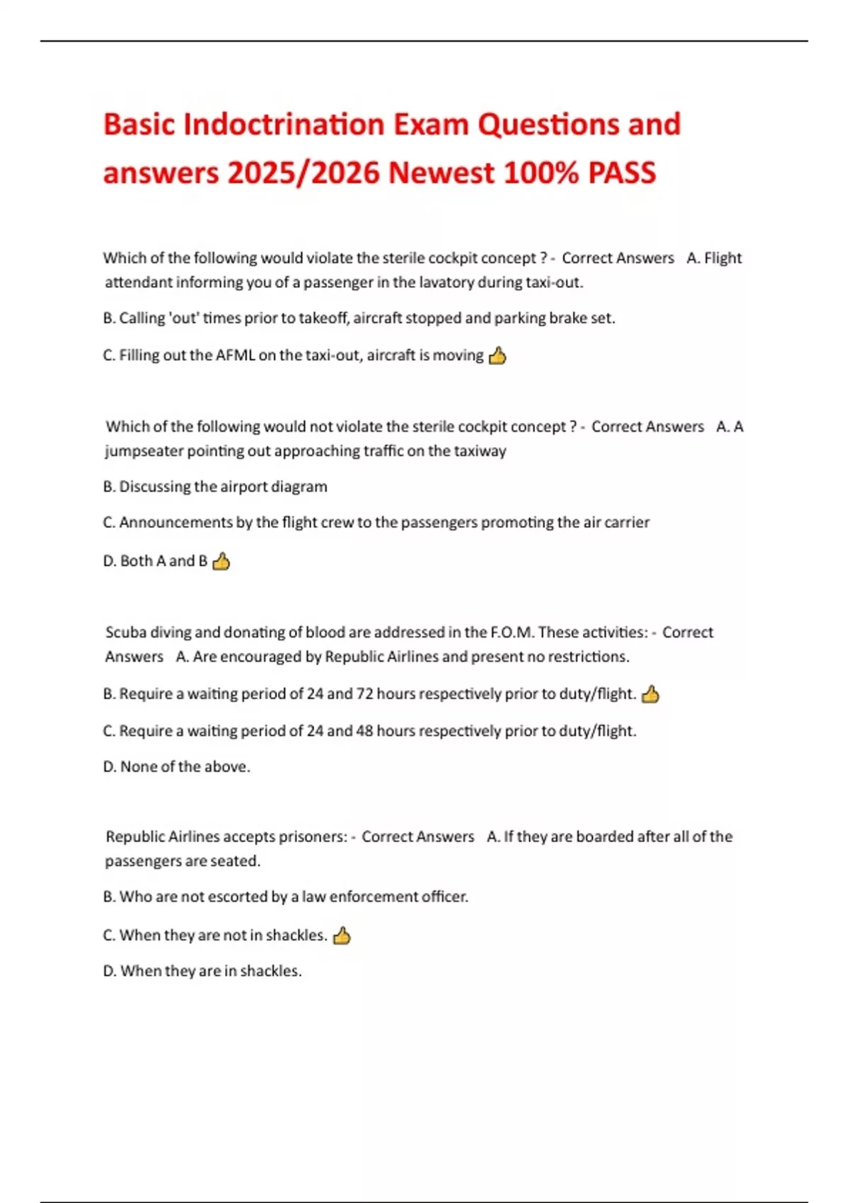 II! Republic Airlines accepts prisoners: - Correct Answers A. If they are boarded after all of the