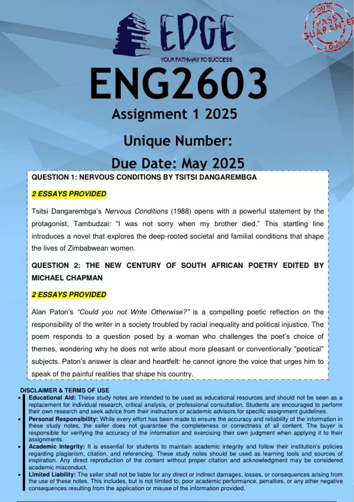 ENG2603 Assignment 1 (ANSWERS) 2025 - DISTINCTION GUARANTEED