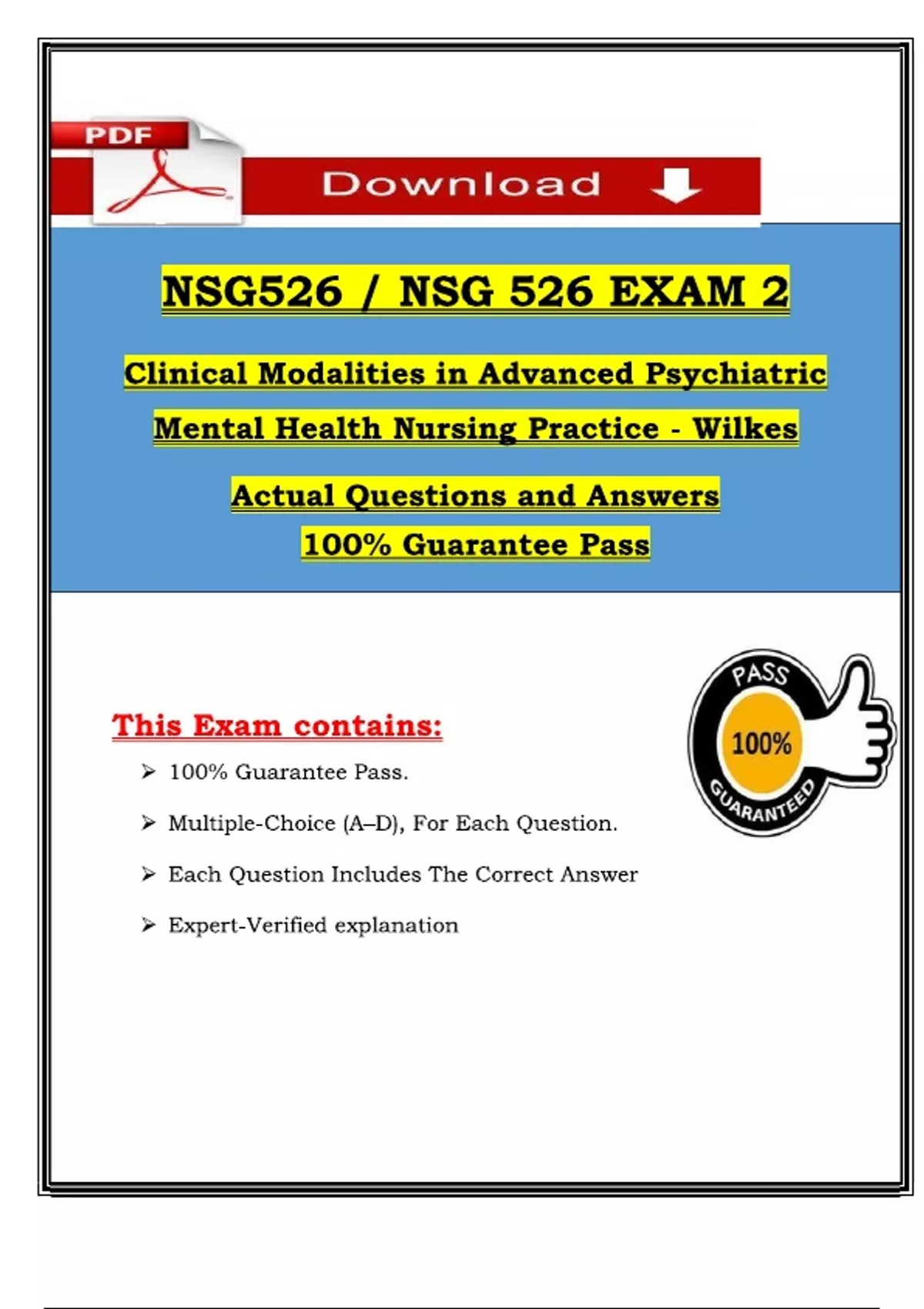 NSG526 / NSG 526 Exam 2 (2025 / 2026) Clinical Modalities in Advanced Psychiatric Mental Health Nursing Practice | Rated A Guide with Verified Answers - Wilkes Wilkes NSG 526 Exam 2 Actual Qs & Ans to Pass the Exam Clinical Modalities Adv. Psych (Latest 2025 / 2026), Pass with Confidence