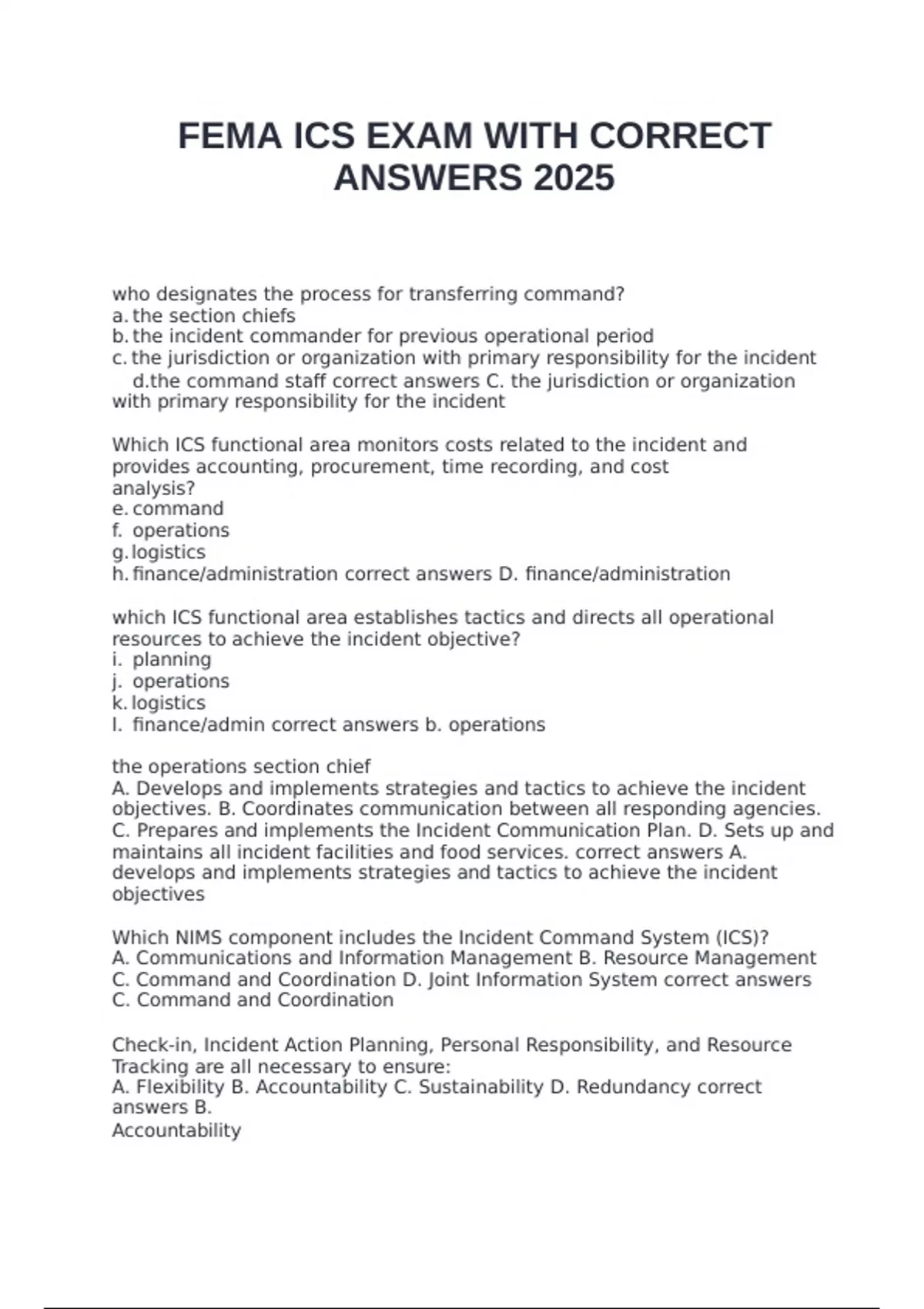 FEMA ICS EXAM WITH CORRECT ANSWERS 2025