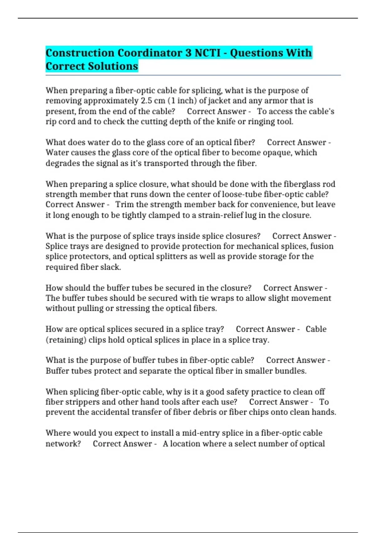 present, from the end of the cable? Correct Answer - To access the cable's