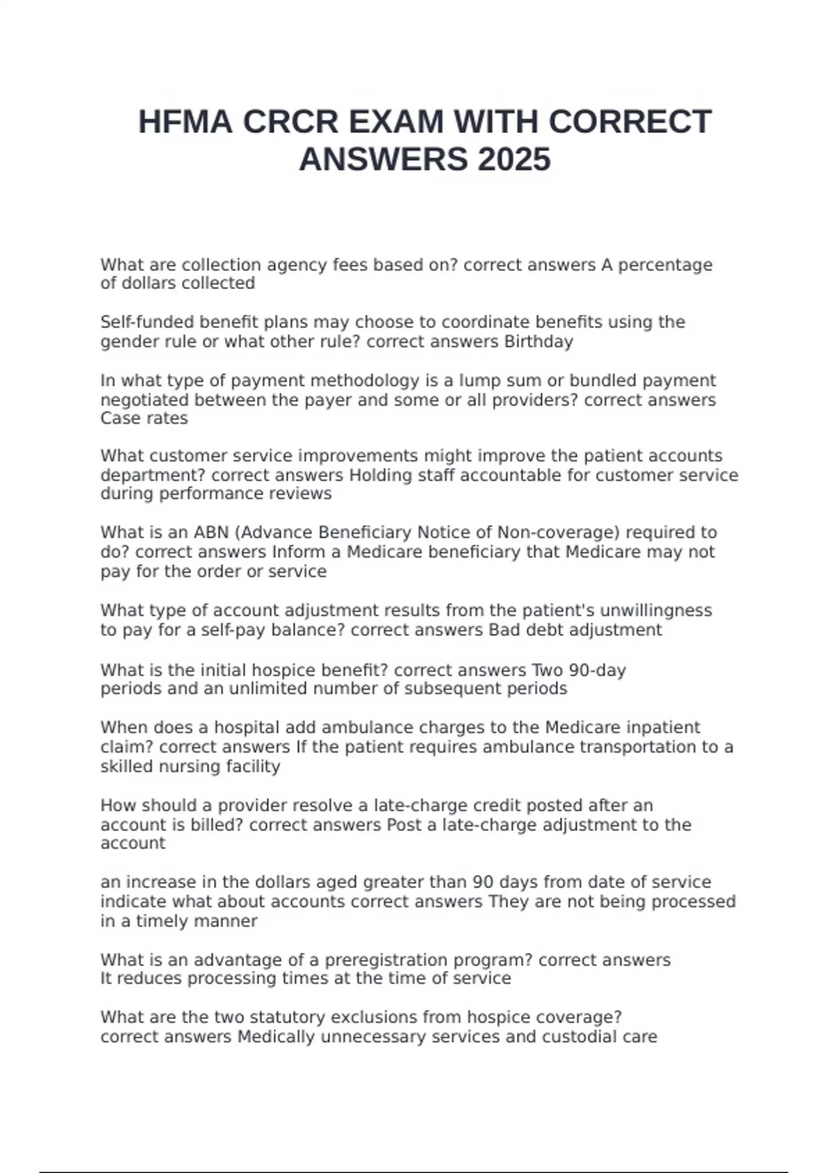 HFMA CRCR EXAM WITH CORRECT