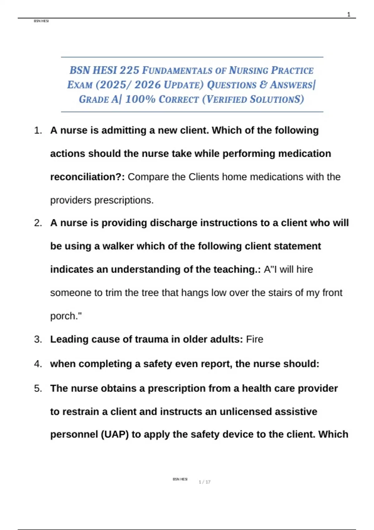 BSN HESI 225 FUNDAMENTALS OF NURSING PRACTICE