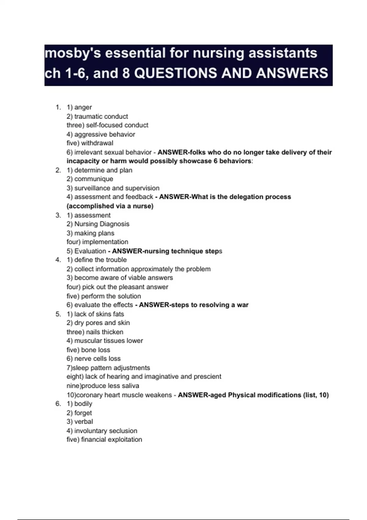 mosby's essential for nursing assistants ch 1-6, and 8 QUESTIONS AND ANSWERS 100% VERIFIED FOR A GUARANTEED PASS