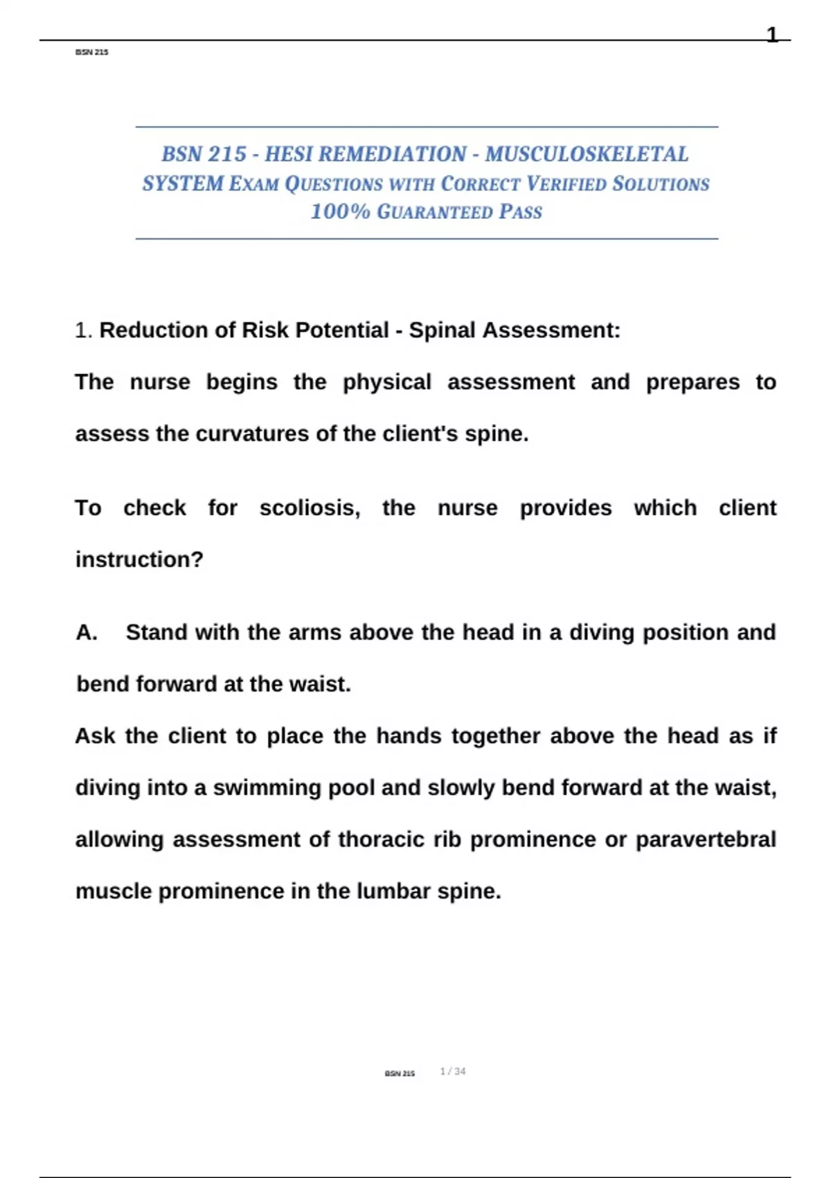 BSN 215 - HESI REMEDIATION - MUSCULOSKELETAL