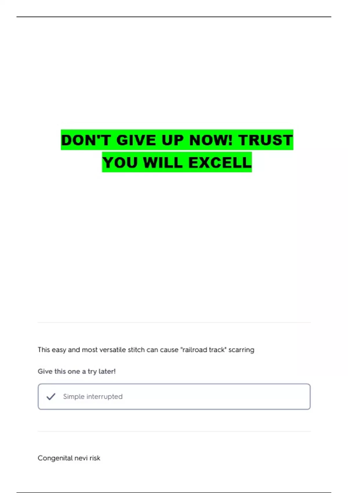 This easy and most versatile stitch can cause "railroad track" scarring