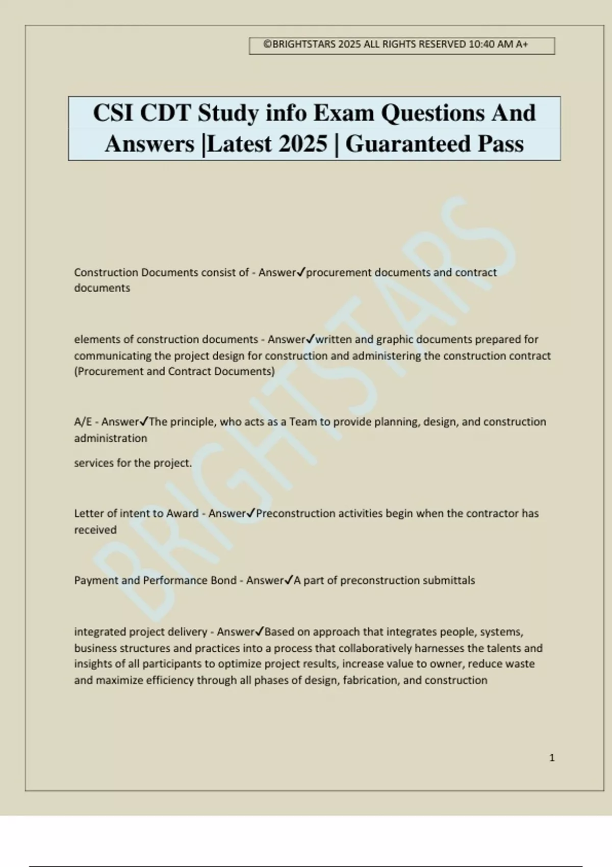 CSI CDT Study info Exam Questions And