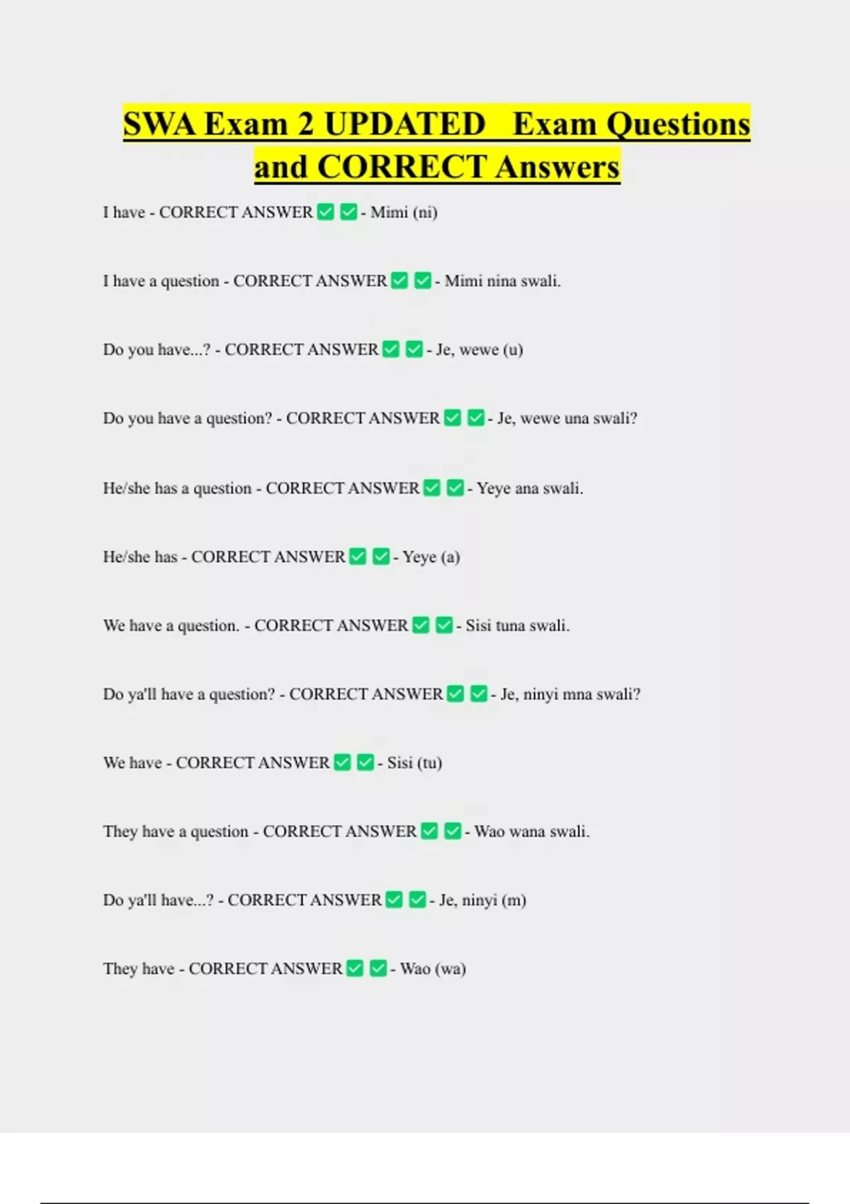 Do ya'll have a question? - CORRECT ANSWER - Je, ninyi mna swali?