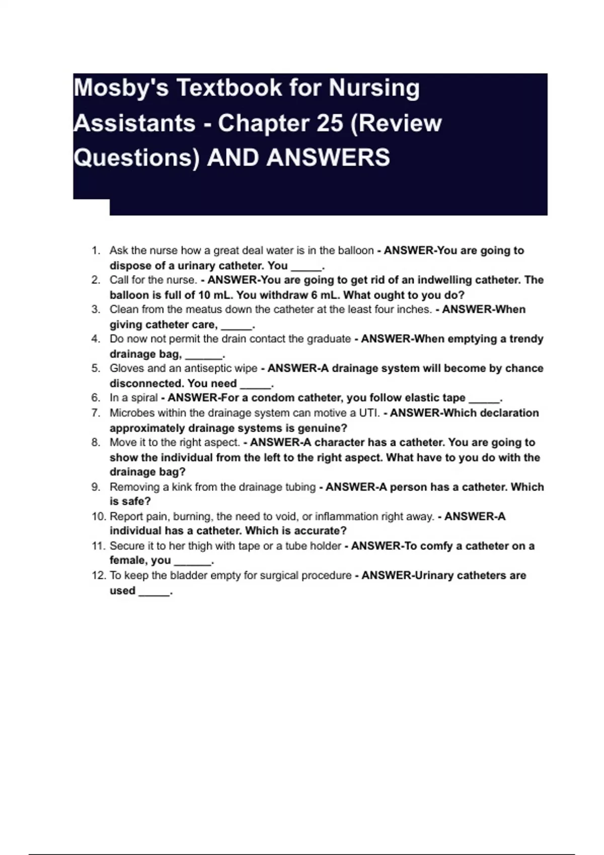 9.​ Removing a kink from the drainage tubing - ANSWER-A person has a catheter. Which
