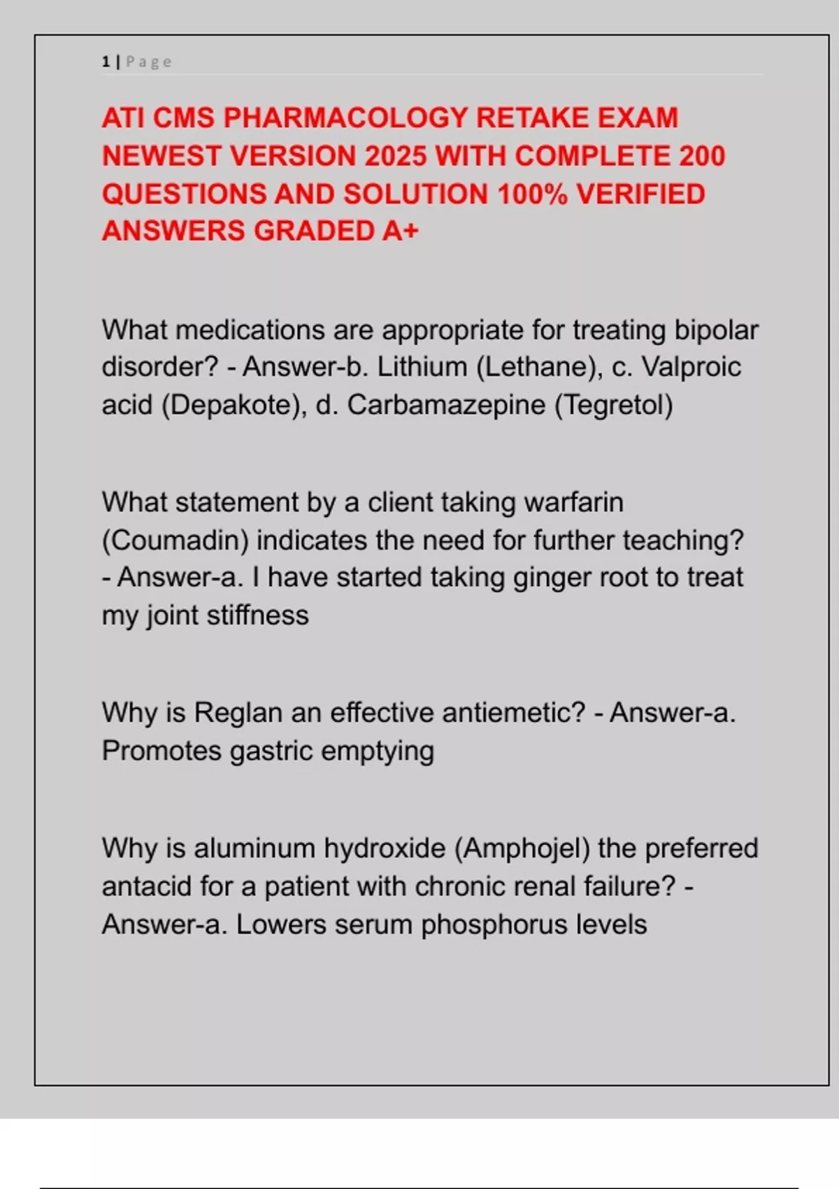 ATI CMS PHARMACOLOGY RETAKE EXAM