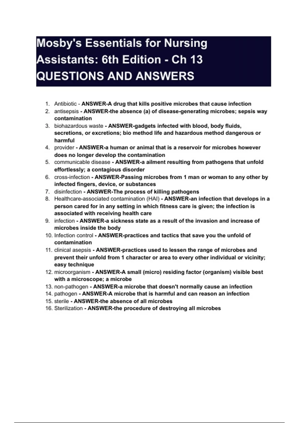 Mosby's Essentials for Nursing Assistants: 6th Edition - Ch 13 QUESTIONS AND ANSWERS 100% VERIFIED FOR A GUARANTEED PASS