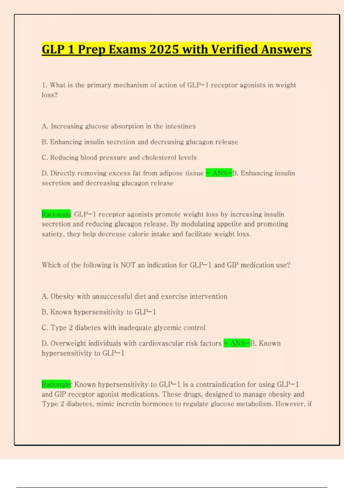 GLP 1 Prep Exams 2025 with Verified Answers