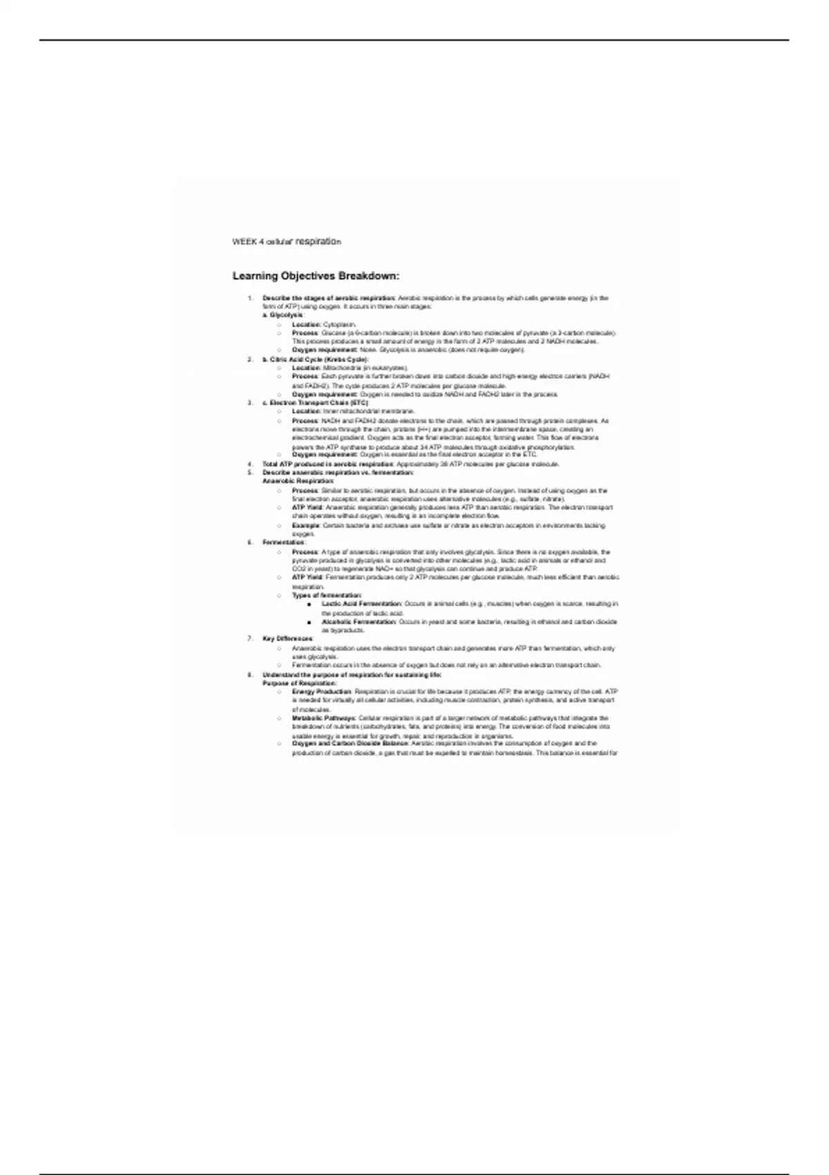 This is a comprehensive and detailed summary/review on; Aerobic Respiration Overview -Glycolysis, Krebs Cycle and more... It's all Yours!!